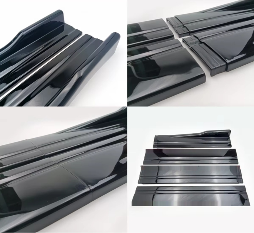 Универсальные черно-черные накладки на боковые пороги — практичное и эстетичное дополнение к большинству автомобилей. Они улучшают внешний вид автомобиля, подчеркивают линию кузова и защищают пороги от повседневных повреждений.