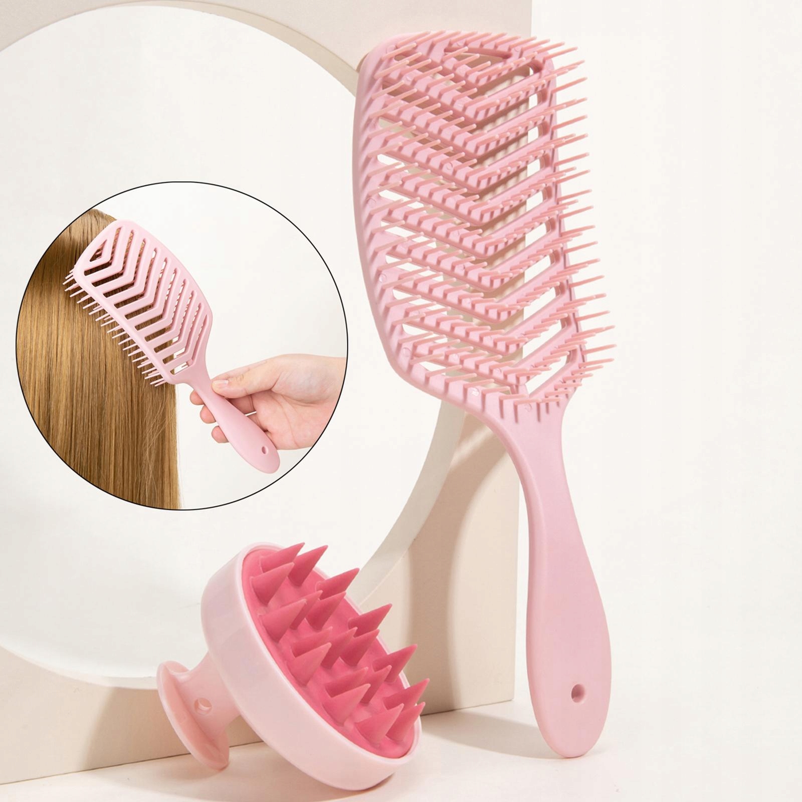 [Эргономичный дизайн]: полая щетка для волос, плотно прилегающая к коже головы; Удобная ручка, удобный хват.