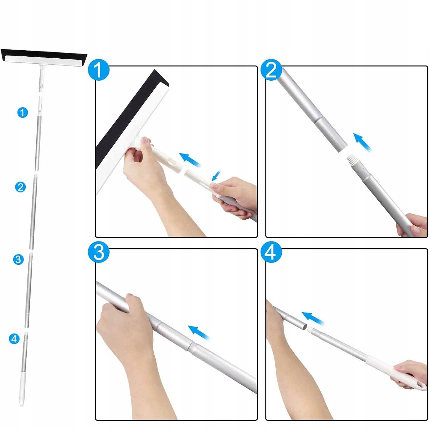 Ручка скребка пола изготовлена из высококачественного алюминия, который устойчив к ржавчине, ее нелегко деформировать, легкая и легко чистить. Скребок изготовлен из прочной пены EVA, которая очень мягкая и не повреждает полы или стекло.