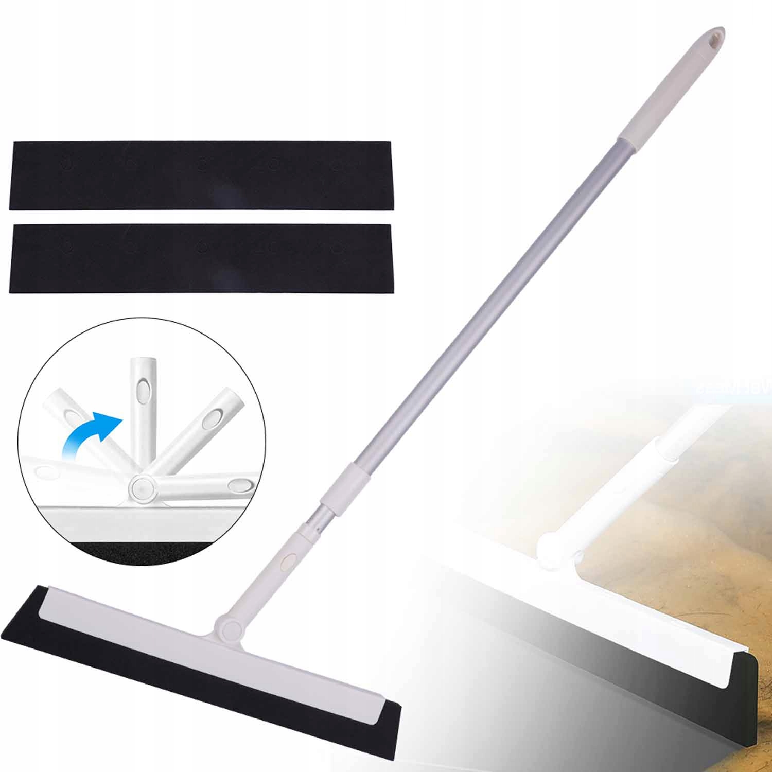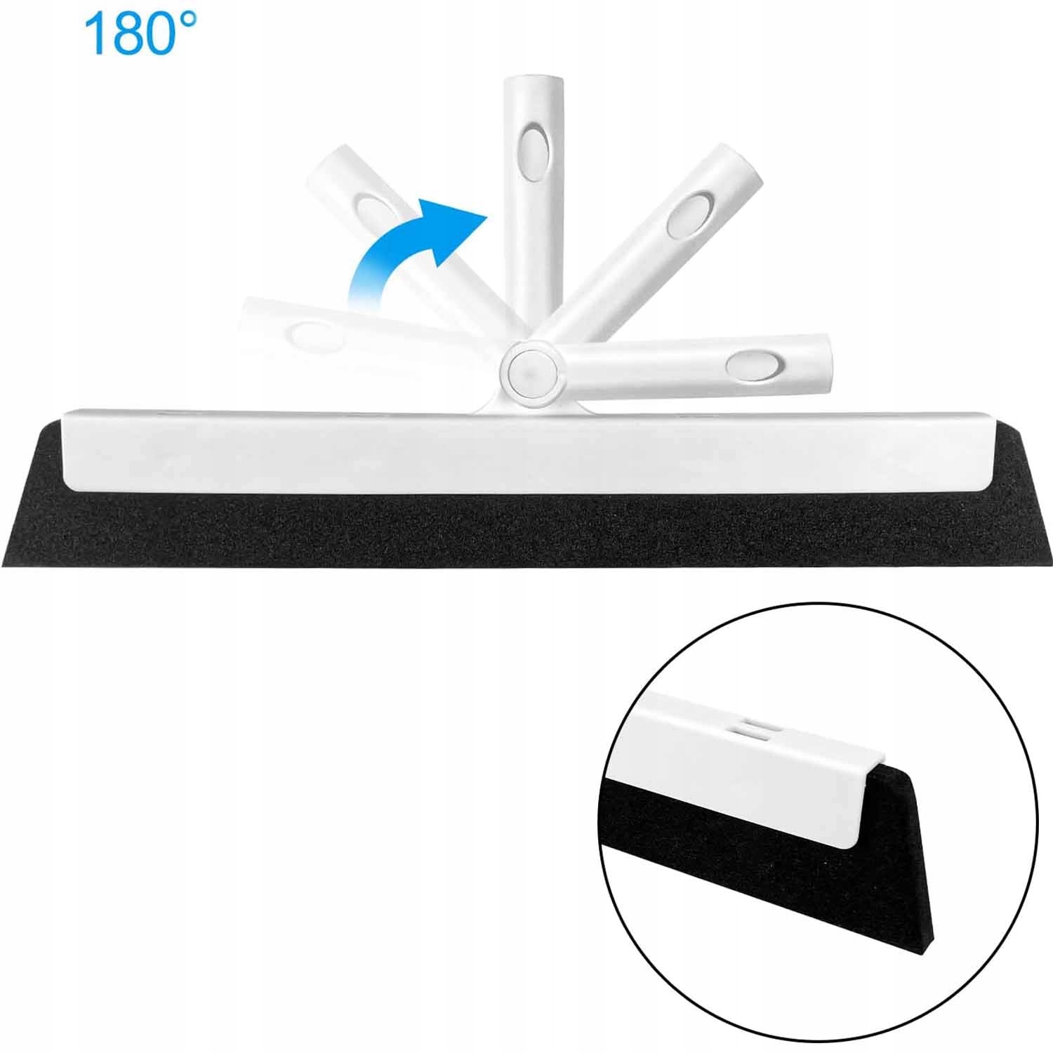 Вывешенная головка может быть повернута на 180 °, чтобы легко очистить все углы и края, очистите поверхности окон без царапин и быстро удалите большие площадки стоячей воды на полу.