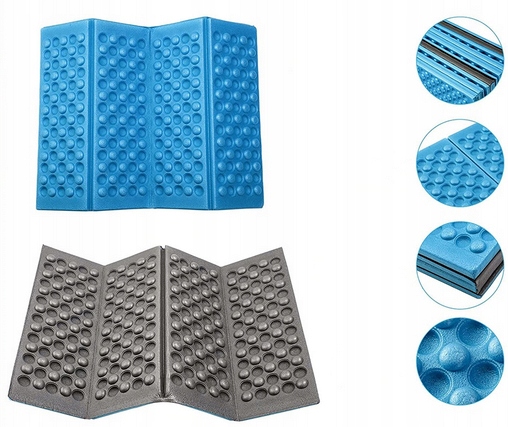 Складной туристический коврик для сидения изготовлен из гибкого перфорированного пенопласта, что снижает вес и обеспечивает лучшие противоскользящие и тепловые свойства.