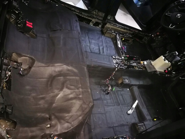 Сначала следует применить бутиловый мат АБ-2 (бутиловый мат 2 мм) или АБ-25 (бутиловый мат 2,5 мм), повторяющий форму листового металла. Бутиловые маты поглощают вибрацию и создают шумовой барьер.