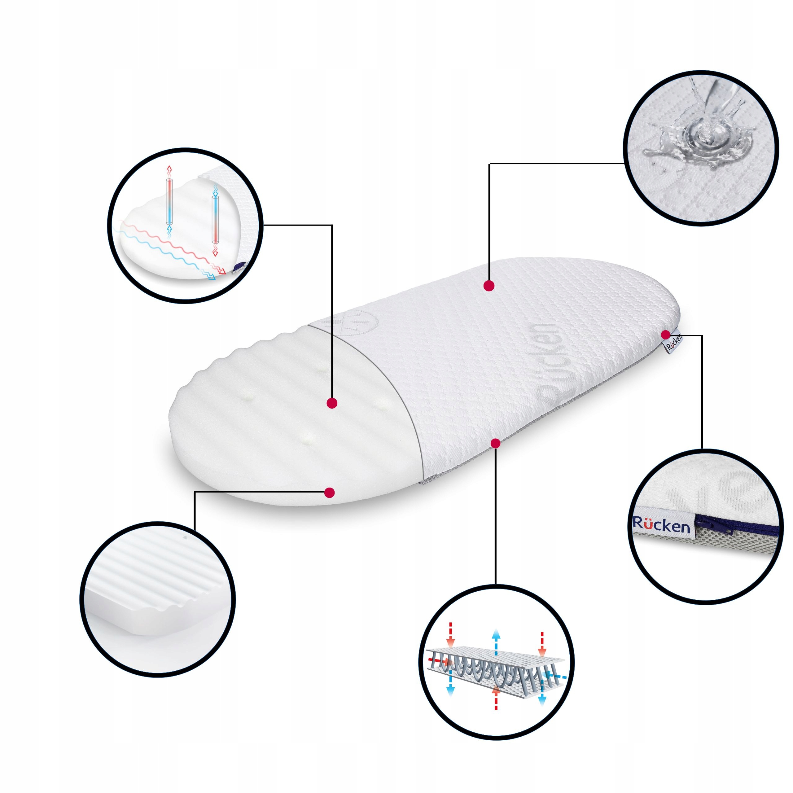 Чехол наматрасника состоит из двух материалов с разными свойствами. В сочетании с двумя типами пены внутри можно получить до 4 различных комбинаций. Это позволит вам адаптировать наш матрас к индивидуальным потребностям вашего ребенка.