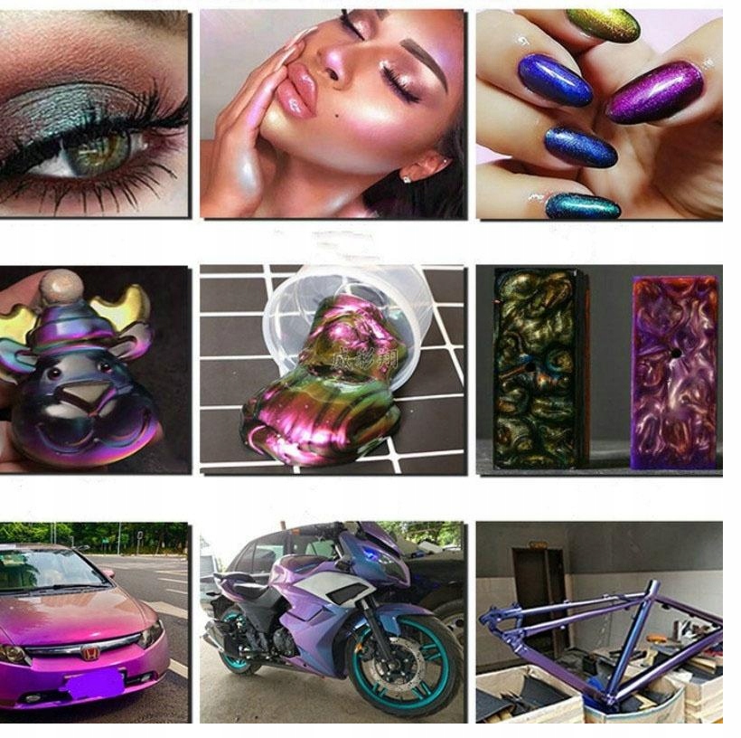 Особенности: 4 цвета. Порошок-хамелеон: 4 разных цвета, высококачественный пигмент, меняющий цвет. Вы можете смешать ее или покрасить и покрыть эпоксидной смолой, лаком, в любом случае это создаст красивый эффект.Порошок камелеона.