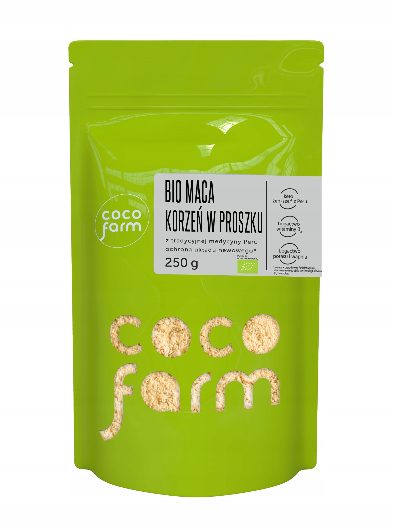 Корень маки с фермы Coco — это измельченное в порошок растение мака (Lepidium meyenii), которое растет в высокогорных, климатически неблагоприятных частях Анд, поэтому растение мака накапливает ценные питательные вещества и витамины в корень. Мака — это перуанский женьшень, который считается суперпродуктом, то есть необработанной и натуральной пищей с ценной питательной ценностью. НАСА включило корень маки в список продуктов для астронавтов именно из-за его свойств.