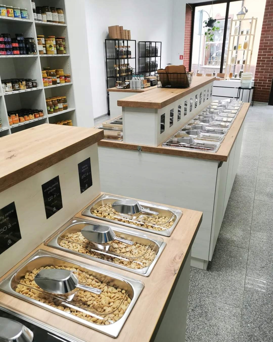 Предложение сыпучих продуктов питания дополняется продукцией польских фабрик, экологические производители и местные мастера. Также будет еда без глютена и сахара