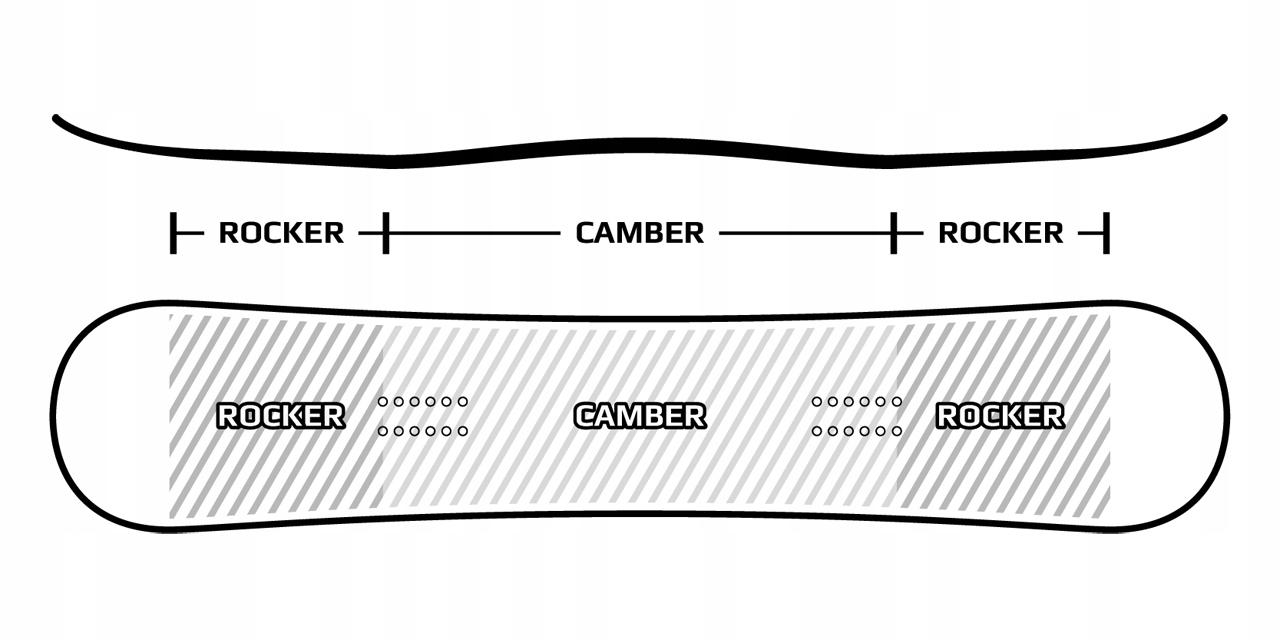 Микроагмер между облигациями, с рокером 5 см на луне и на хвосте приносит много преимуществ. Низкая секция разводки между привязками значительно улучшает удержание краев, а секция рокера на луке и хвосте помогает избежать случайного края, ловя менее опытных сноубордистов. Одним из ключевых преимуществ Камрокера также является его великое поведение доски в снегу.