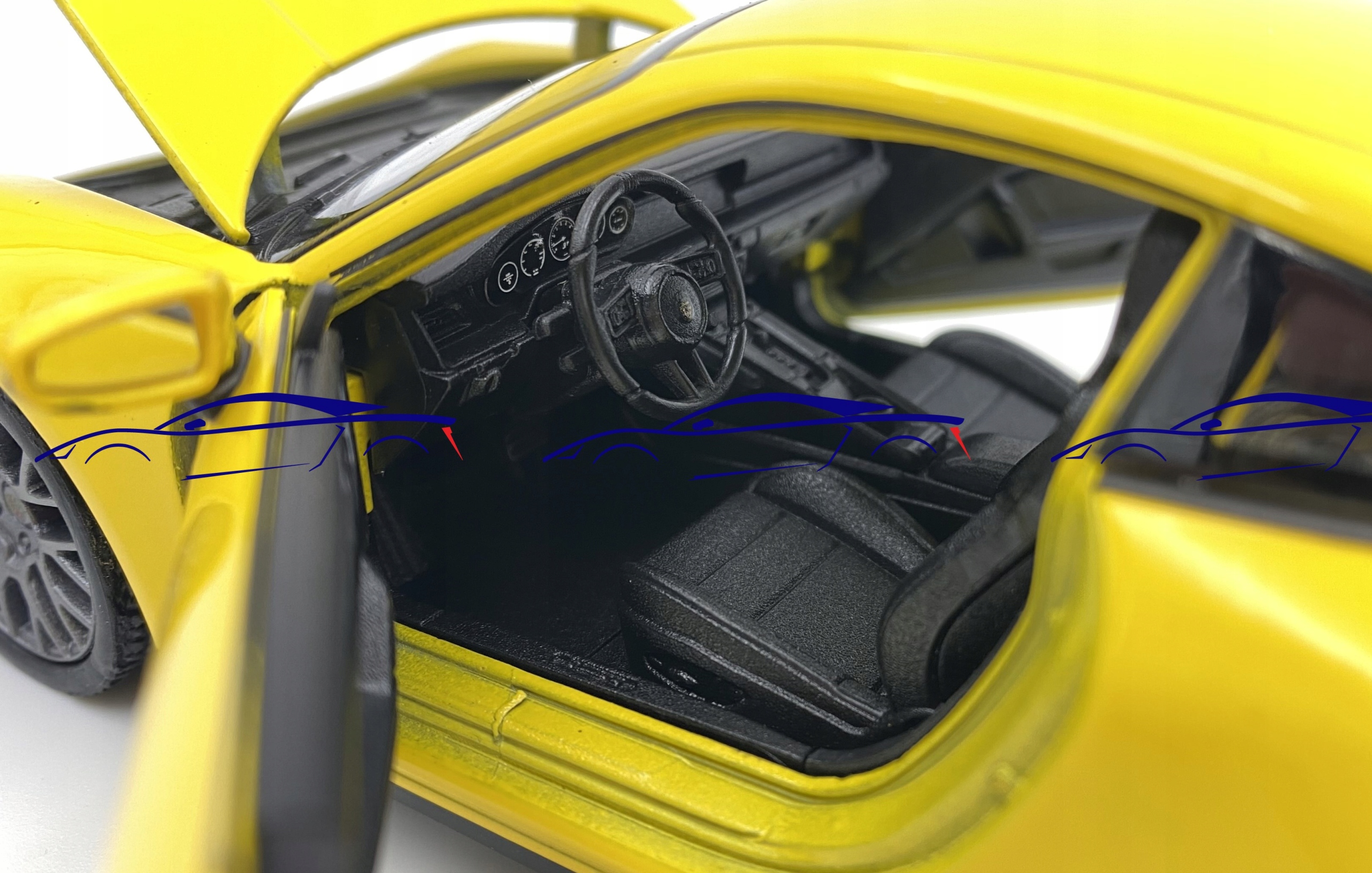 Модель автомобиля Porsche отличается вниманием к деталям. Имеет подвижные элементы - двери, колеса, багажник.