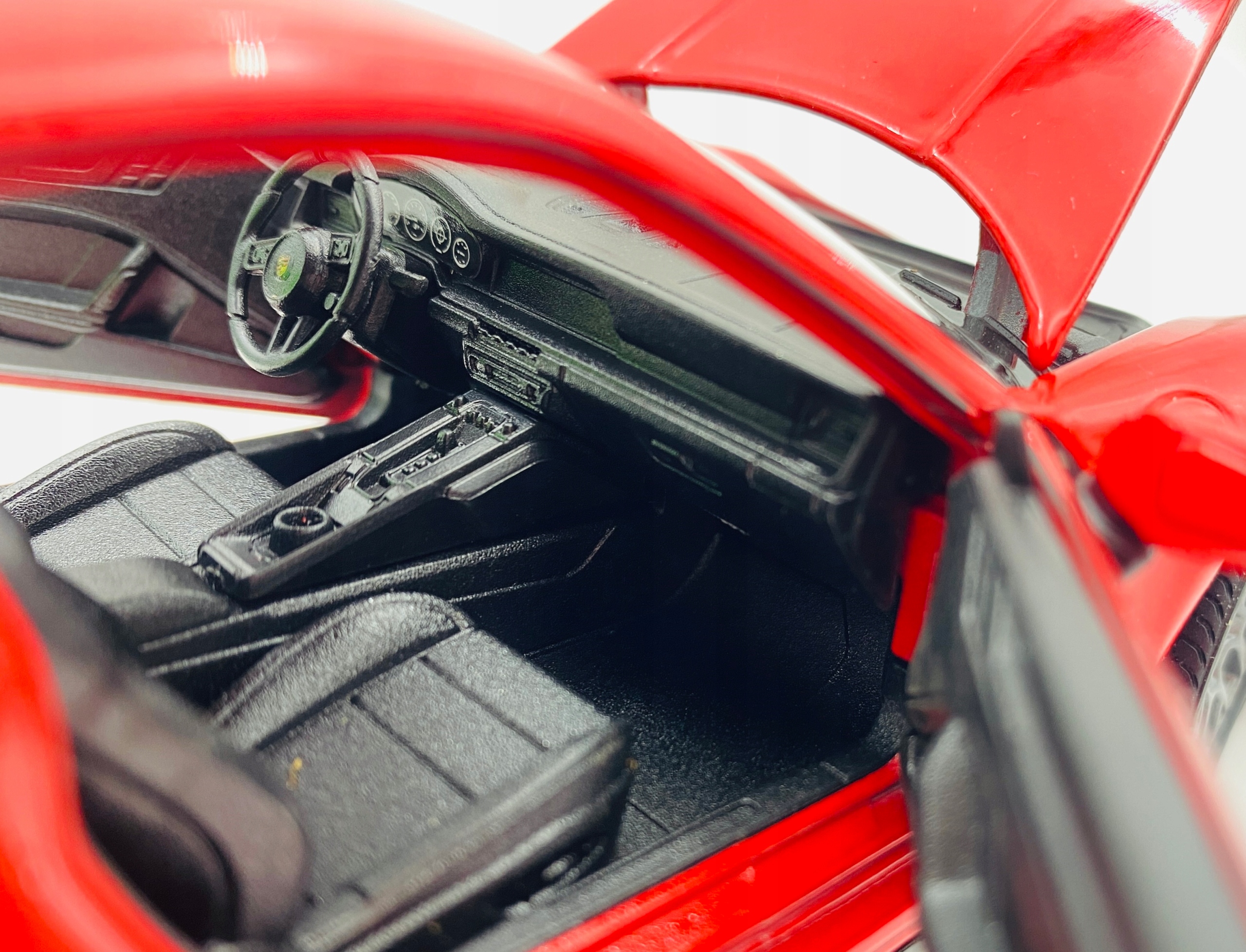 Модель автомобиля Porsche характеризуется вниманием к деталям. У него есть движущиеся элементы - двери, колеса, багажник