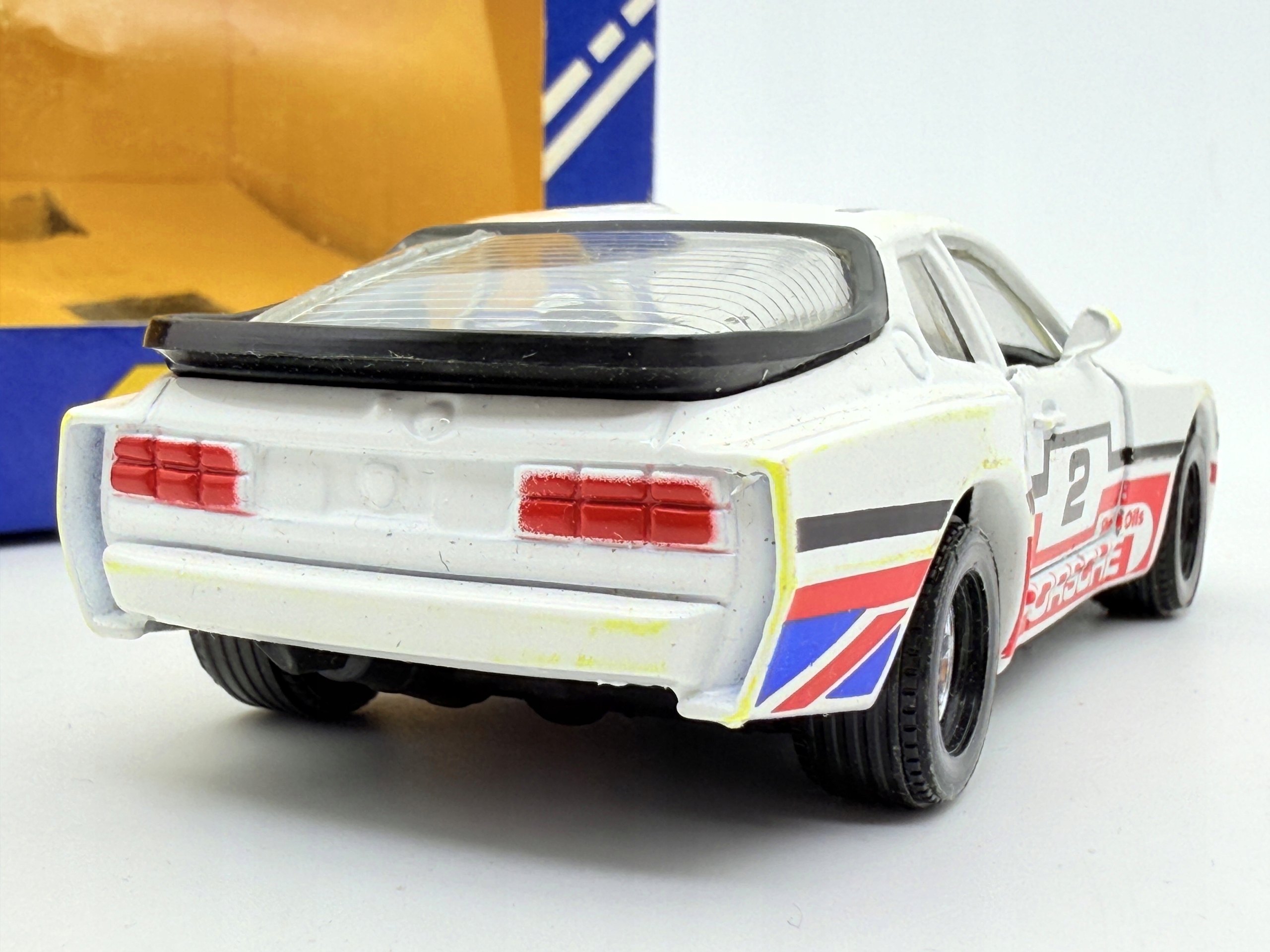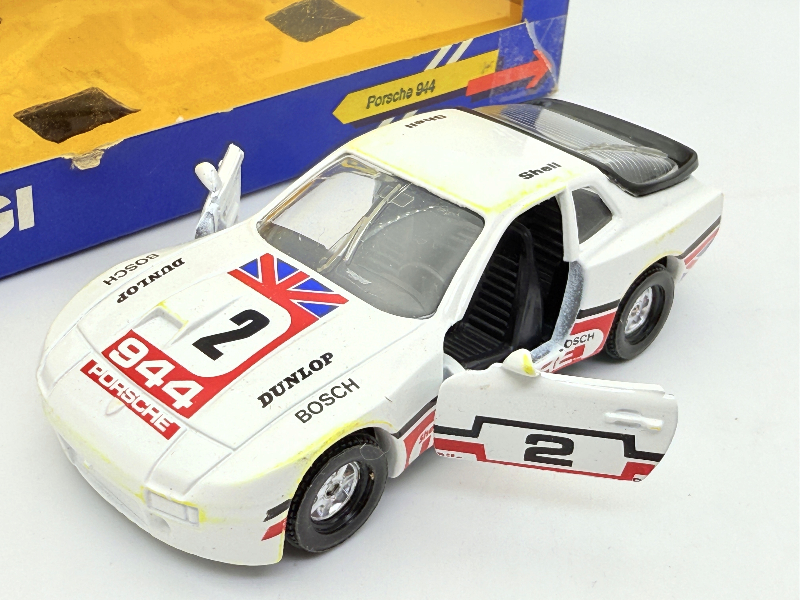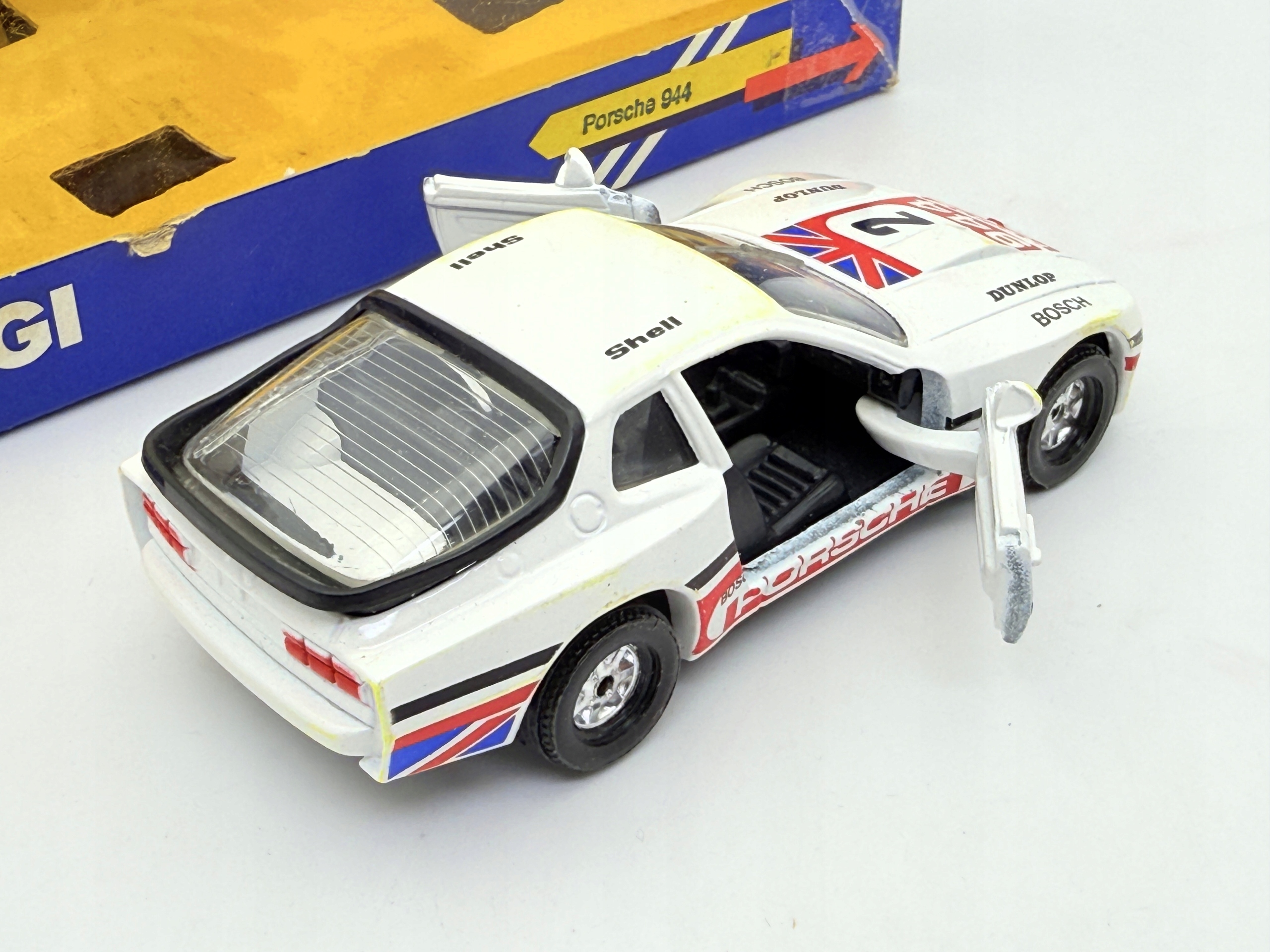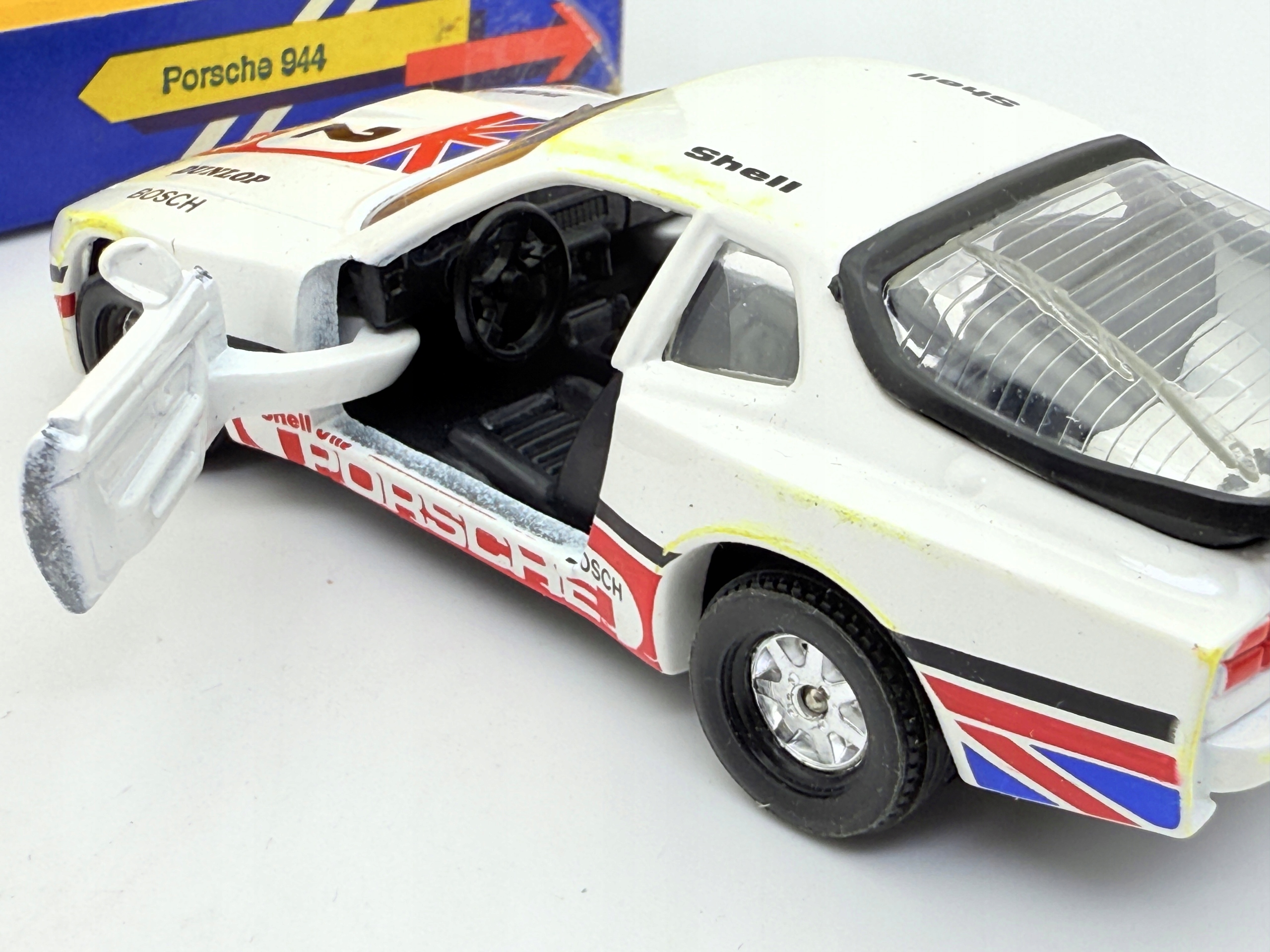 Модель основана на реальном Porsche 944, который был популярным спортивным автомобилем 80 -х. Живопись относится к гонкам, и цвета напоминают те, которые используются в британских автомобильных гонках. Модель принадлежит гоночной серии Corgi.