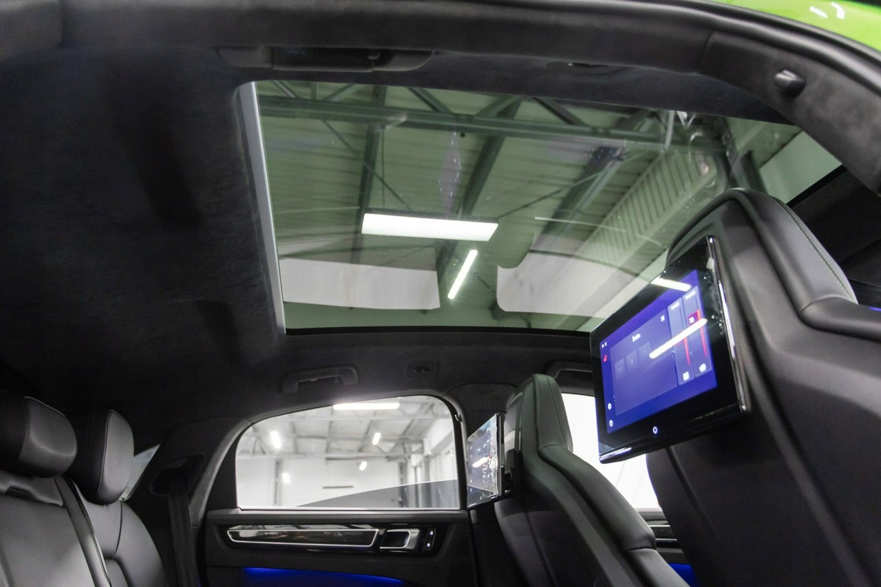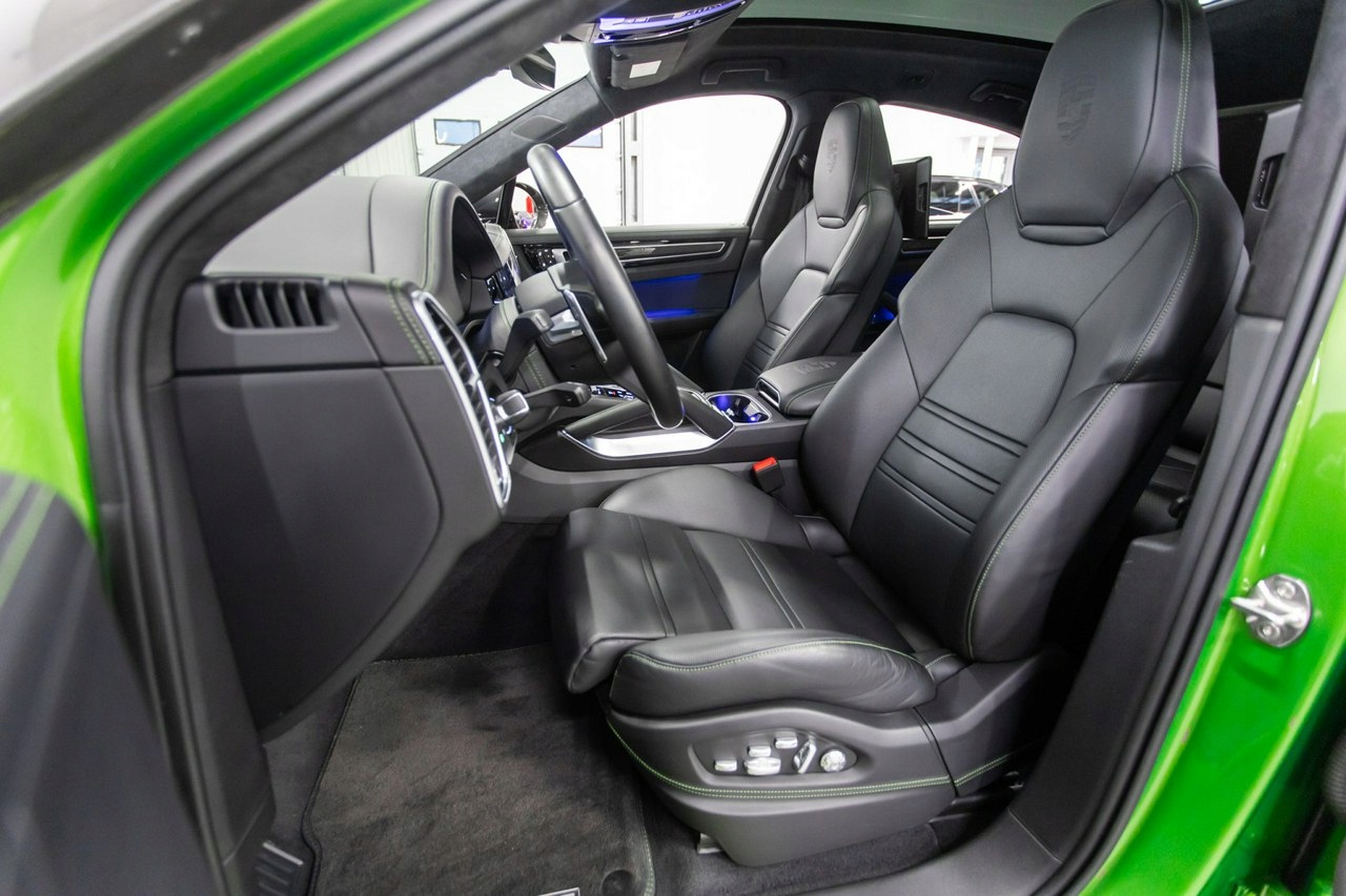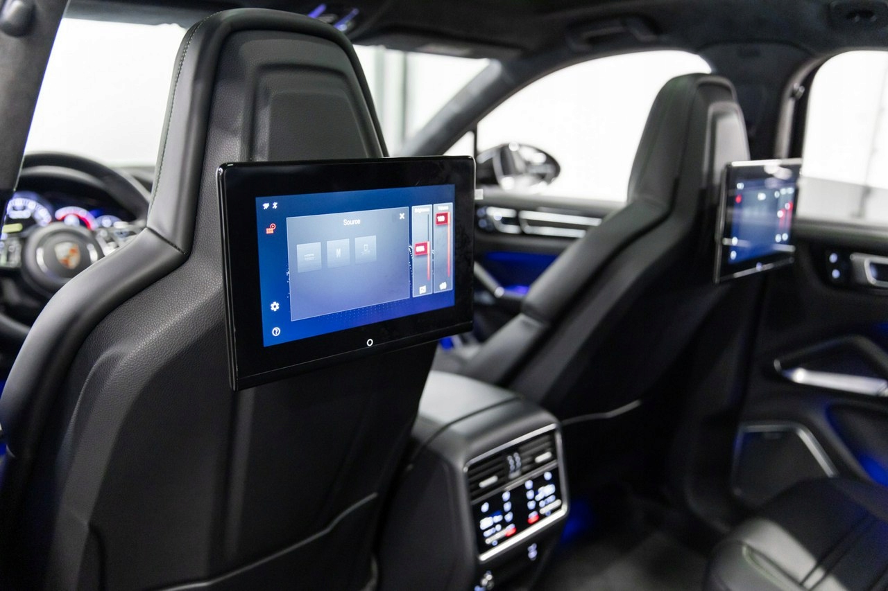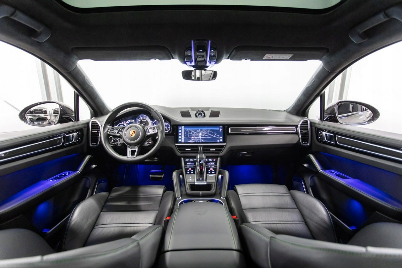 Porsche Sport Design, пневматическая подвеска, тормоза PSBC, динамическая подвеска PDCC, управляемая задняя ось, панорама, 22-дюймовые диски Cayenne Sport Classic цвета Satin Platinum, фары PDLS+, активный круиз-контроль, ночное видение, подъем головы, система закрытия дверей, регулируемые в 18 направлениях спортивные сиденья, вентиляция и подогрев, Chrono спорт, электрические шторки, электровыдвижной крюк, задние мониторы и шумопоглощающие стекла.