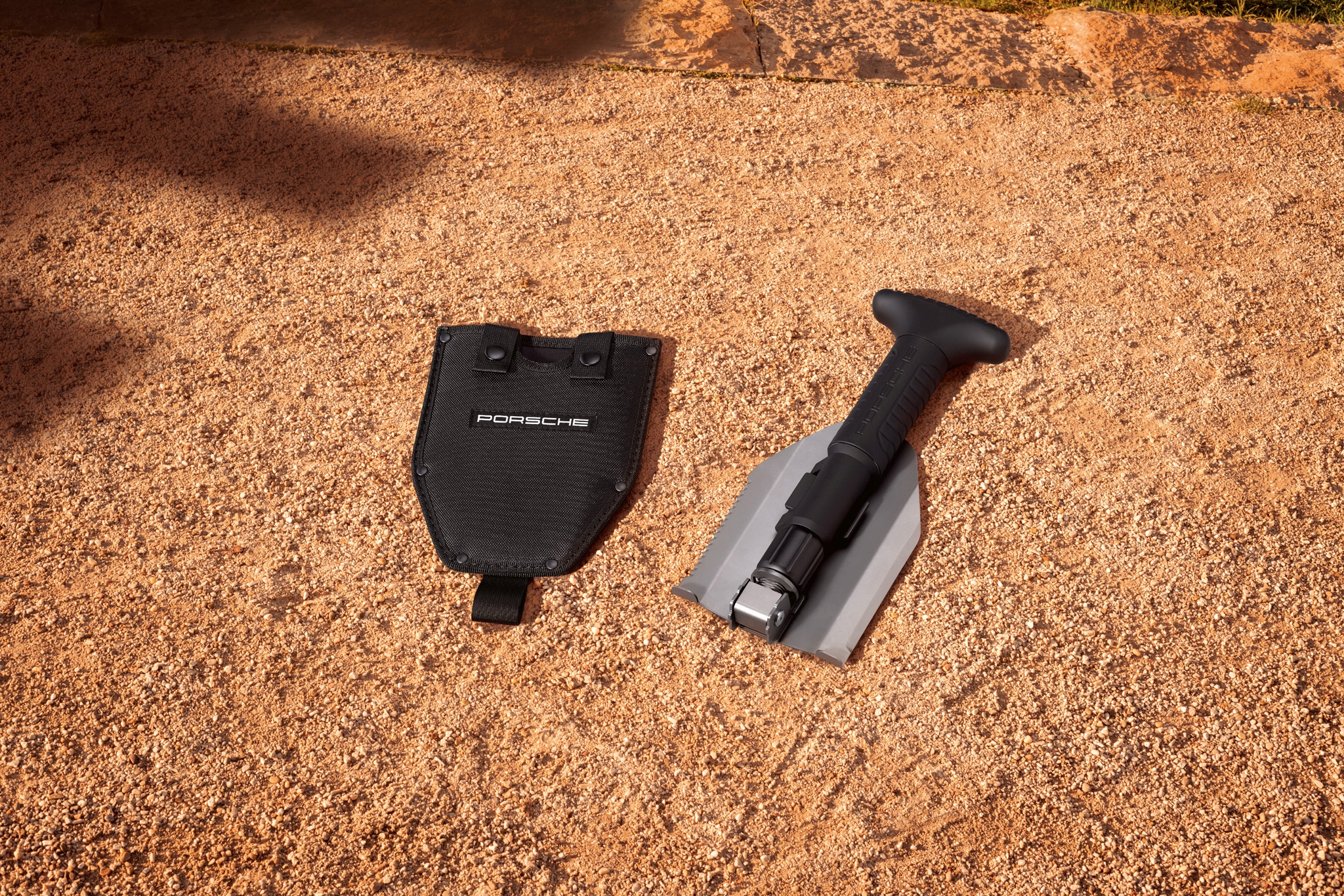 Выдвижная лопата с надписью «Porsche» действительно универсальна. Его стальное лезвие, покрытое титаном, в дополнение к функции лезвия, имеет топор и пила. Например, его можно использовать для выкопания автомобиля, а также для разрыва ночного лагеря и поиска топливного дерева. После окончания операции лист лезвия исчезает в густой черной защитной крышке.
