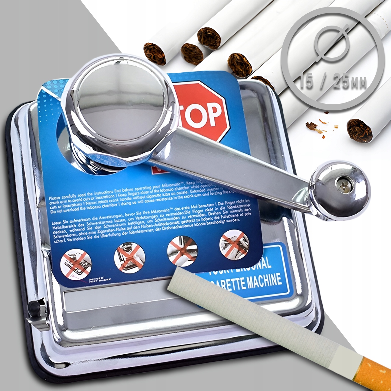 Используя ручной наполнитель, пользователь может регулировать плотность и количество табака в сигарете по вашему вкусу.
