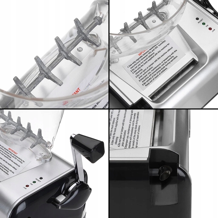 Благодаря большой табачной воронке мы можем насыпать в него один раз и наполнить его дюжиной или около того сигарет. Использование поршневого механизма вместо пружины гарантирует равномерное распределение табака в сигарете. Изделие изготовлено из высококачественных материалов и наверняка прослужит долгие годы.