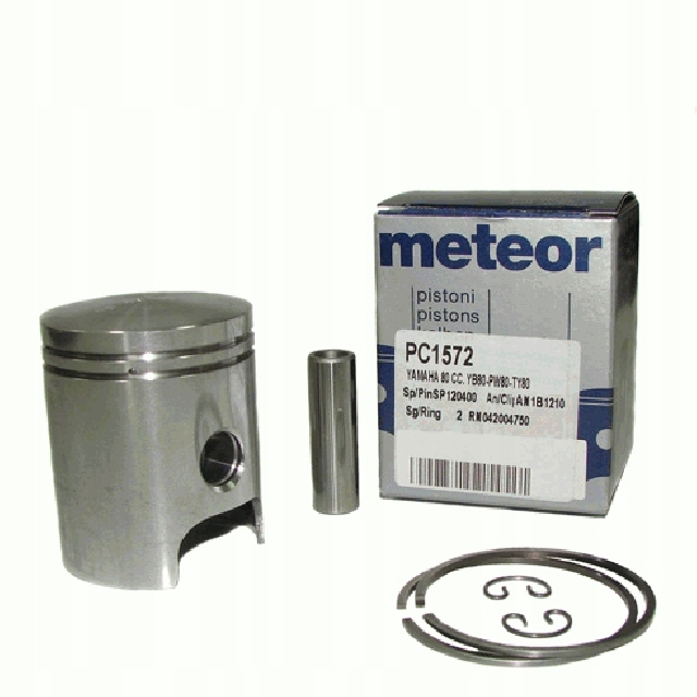 Метеористые поршни для двух ударов двигателей выполняют метод литья алюминиевого сплава с 18 % содержанием кремния. Высокое содержание кремния обеспечивает незначительное расширение поршня при высоких температурах, гарантируя долгую и без проблем работы поршня в двигателе, даже в тяжелых условиях. Поршневые отливки нагреваются при высоких температурах. Шестидесятилетний опыт работы в производстве поршней позволил производство легких поршней с износом с небольшим индикатором трения. Чтобы уменьшить трение и продлить срок службы поршня, поршневое пальто в процессе производства опрыскивается слоем молибдена. Поршневые кольца поступают от японского производителя или итальянской компании Caber.