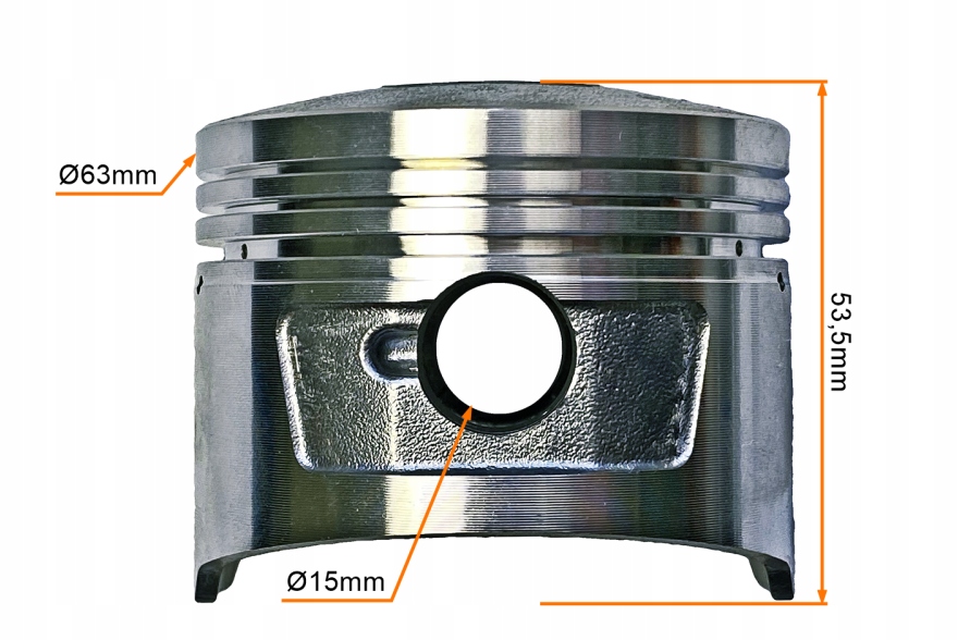Цилиндровый поршень, производительность которого гарантирует долгое и без проблем. Благодаря использованию дополнительных смазочных отверстий, поршень работает намного лучше в цилиндре. Включено с кольцами, булавками и защитой свай.