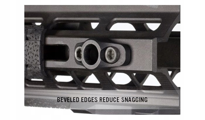 Использование в конструкции фрезерованного алюминия Mil-Spec обеспечивает высокую прочность в сочетании с массой, не влияющей на баланс оружия. Форма элемента профилирована, чтобы предотвратить его зацепление за элементы оборудования.
