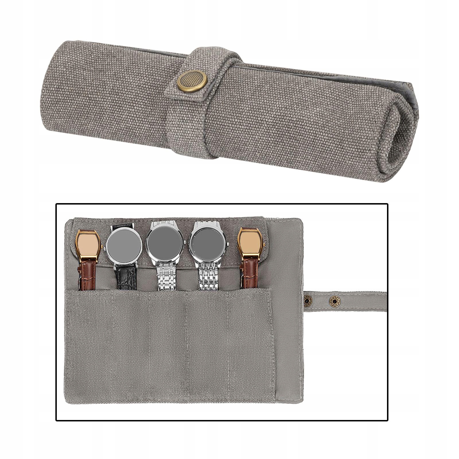 Portable Watch Roll Organizer, Jewelry Case Display Protector Foldable Gray