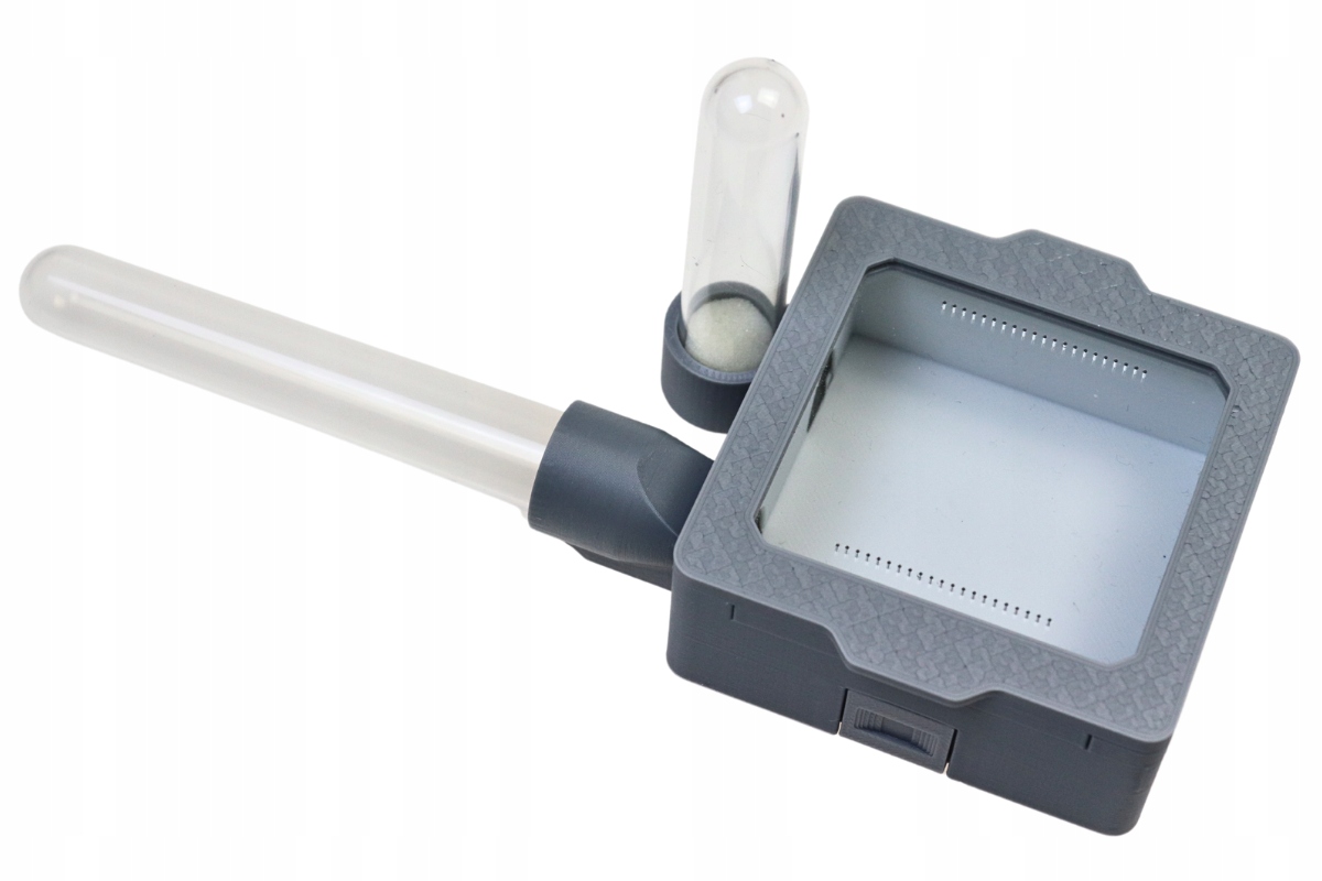 - Размеры с подключенными пробирками: 18 x 7 x 7,5 см