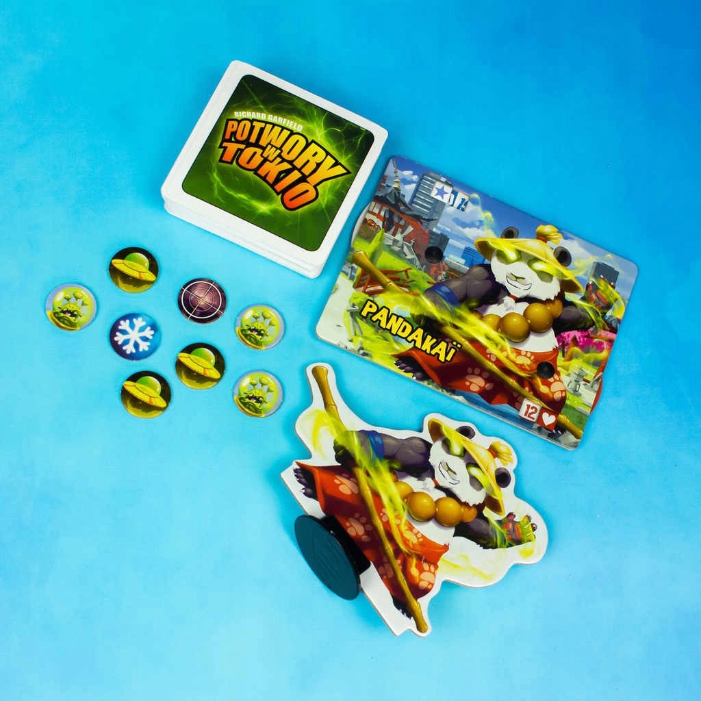 Монстры в Токио: усиление! Top-Up — это дополнение к культовой настольной игре Monsters in Tokyo от Ричарда Гарфилда, автора таких коллекционных игр, как Android: Netrunner и Magic: The Gathering. Включите мощность! представляет нового персонажа, огромную панду Пандакай, а также систему Эволюции, благодаря которой управляемые нами монстры обретут уникальные способности! Каждый монстр получит 8 специальных карт Эволюции, которые он сможет приобретать по ходу игры и еще эффективнее уничтожать своих противников!Панда на горизонте!Привет, здравствуйте, это снова ваш любимый журналист Акихоро! Присоединяюсь к вам и сообщаю очередную порцию последней информации о разрушениях в Токио. На этот раз на востоке города была замечена огромная панда! О, я не знаю, она страшнее или очаровательнее. Она выглядит такой милой, когда жуёт этот бамбук. В любом случае, сегодня утром она разрушила два небоскреба, так что, возможно, вам лучше поостеречься от нее. Это еще больше!Пандакай присоединился к борьбе за столицу Японии! Чтобы победить ее, все монстры получили набор из восьми карт Эволюции! Когда игрок во время своего хода выполняет броски как минимум с тремя символами Сердца, он получает одну случайную Эволюцию из своей стопки. Эволюции — это особые способности, уникальные для данного существа, которые помогут более эффективно уничтожать противников. Они делятся на одноразовые и постоянные и остаются в секрете до тех пор, пока не будут использованы.Проект эволюцииКак только вы запомните все эволюции, будет хорошей идеей использовать проект эволюции! Это особый вариант игры, в котором вы сможете использовать Эволюции разных монстров! Сначала перетасуйте карты Эволюции, а затем раздайте всем по восемь штук. Каждый из вас выбирает одну Эволюцию и передает остальные игроку слева от вас. Затем он снова выбирает, снова пасует и снова выбирает. Таким образом, каждый из вас создаст свой собственный уникальный набор из восьми Эволюций!Преимущества: