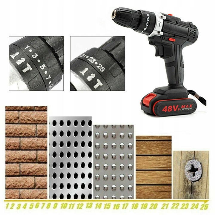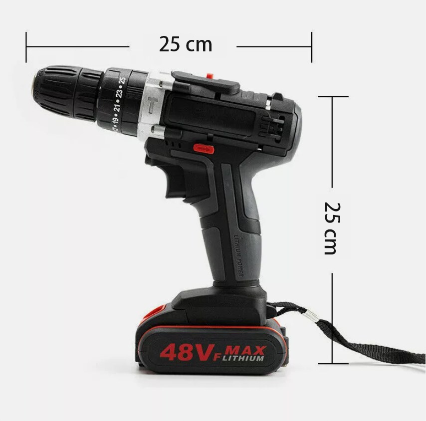 ПОРТАТИВНА АКУМУЛЯТОРНА ДРЕЛЬ/ПОТУЖНА 2 ШВИДКІСТЬ 48 В З ПРИВОДОМ І 2 АКУМУЛЯТОРАМИ