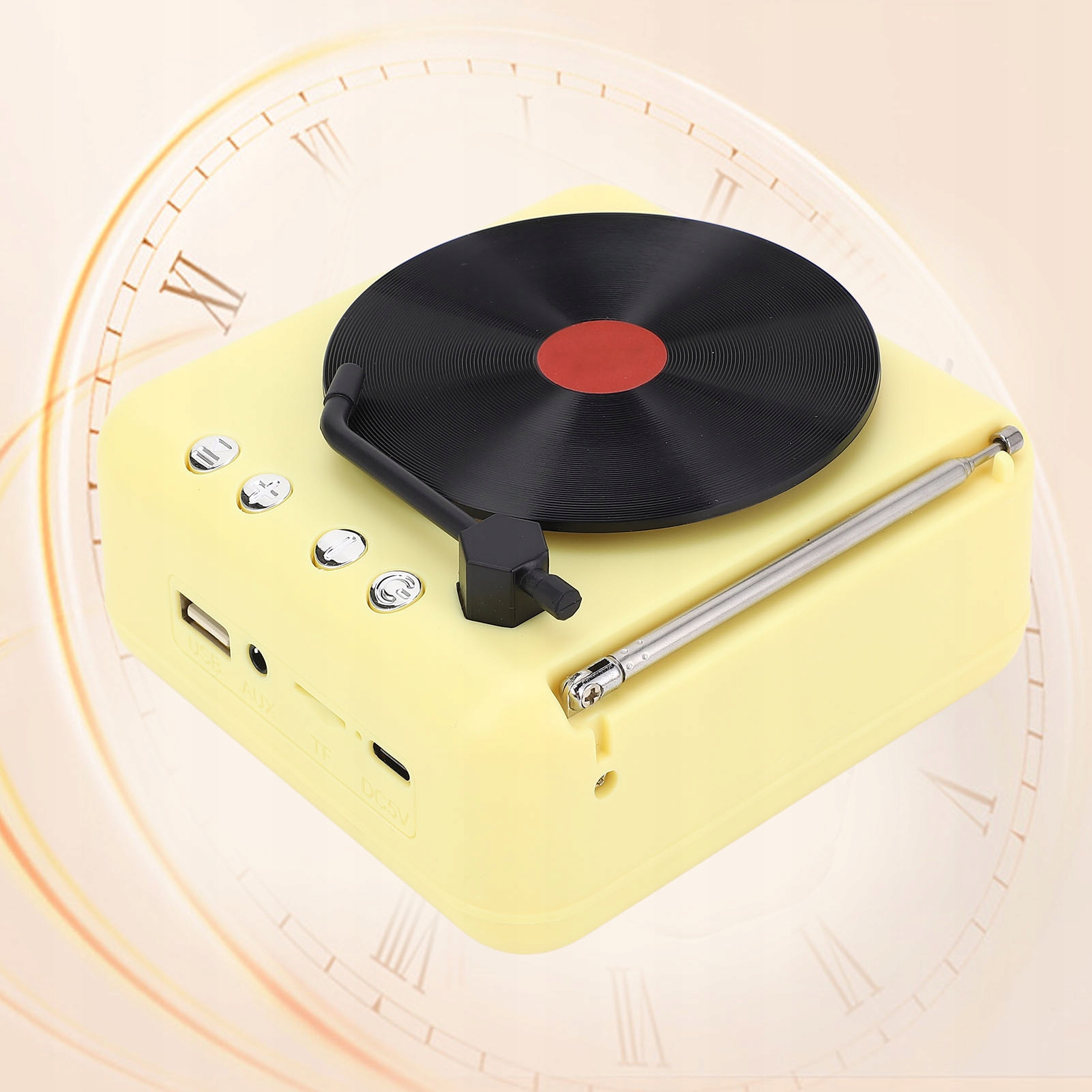 Особенность: 1. [Ретро-стиль] Этот Bluetooth-динамик напоминает старинный проигрыватель и имеет освежающие цвета, добавляя блеск любой комнате.