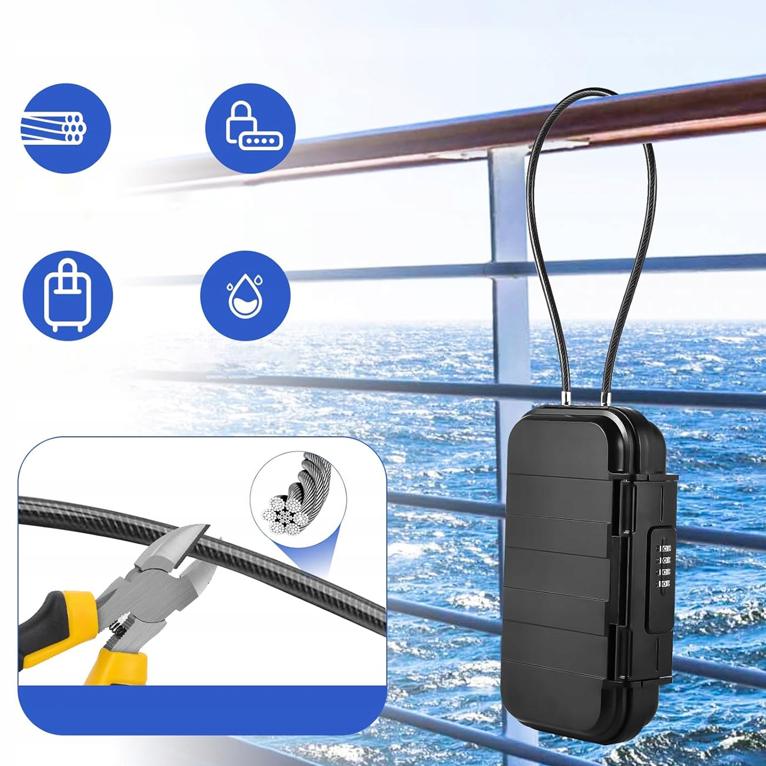 🔥Портативный сейф с 4-значным кодовым замком, утолщенным гибким тросом толщиной 6 мм для путешествий, кемпинга, офиса, автомобиля🔥