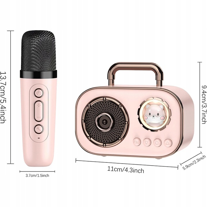 Благодаря этому караоке-аппарату для детей вы сможете разнообразить время, проведенное с семьей. Идеально подходит для встреч на открытом воздухе и любых мероприятий. Наслаждайтесь разнообразной музыкой по FM-радио и демонстрируйте свой вокальный талант с помощью окружающего освещения.