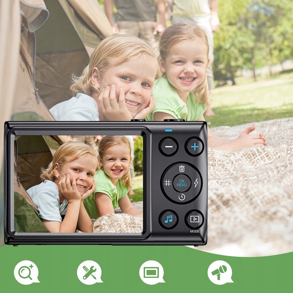 • 📸【МНОГОФУНКЦИОНАЛЬНАЯ ЦИФРОВАЯ КАМЕРА】Поддерживает18-кратный цифровой зум, вы можете использовать кнопкуW/T для увеличения или уменьшения изображения. Встроенная заполняющая подсветка помогает делать фотографии даже в темноте.