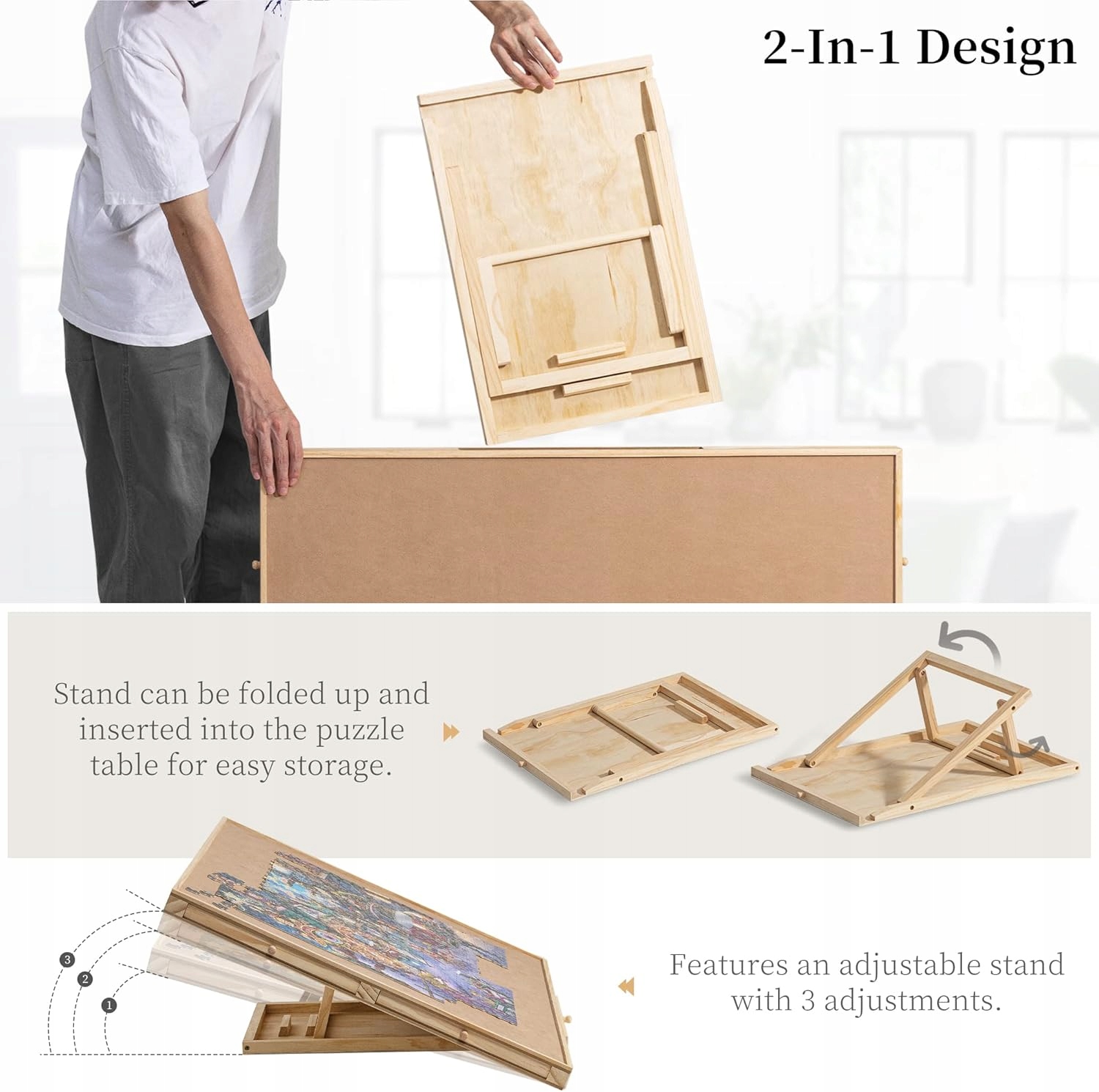 - poączenie stołu puzzli i Stojaka - Zestaw Zawiera Regulowany Stojak Z 3 Ustawieniami Kąta, Aby Uniknąą Sztywności karkuerueszy ć się zabawą z puzzli. Что еще более важно, подставка может быть сложена и помещена в головоломку в таблице, чтобы легко хранить его, когда она не используется. Почему вы можете организовать головоломки или хранить незаконченную игру. Каждый ящик оснащен небольшим магнитом, чтобы убедиться, что он остается закрытым, когда он не используется, и предотвращает отсутствие элементов головоломки