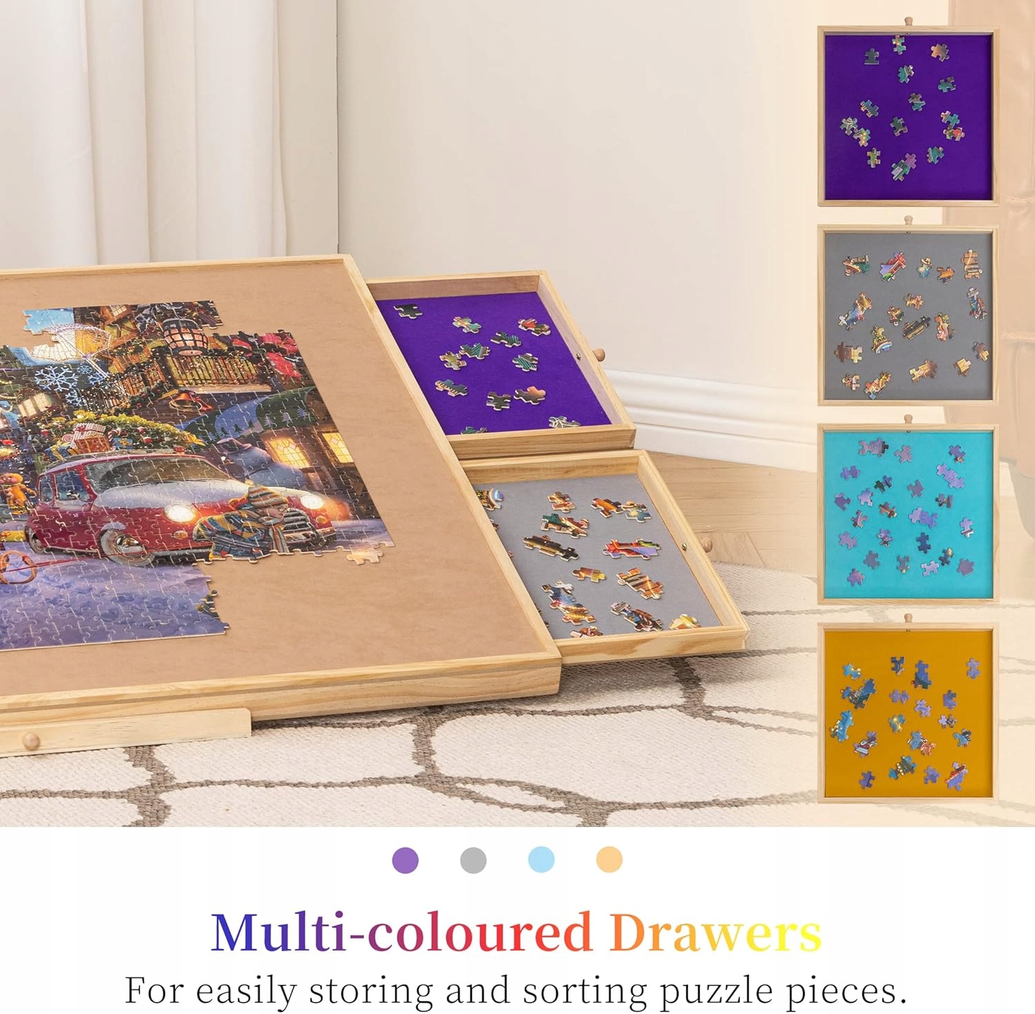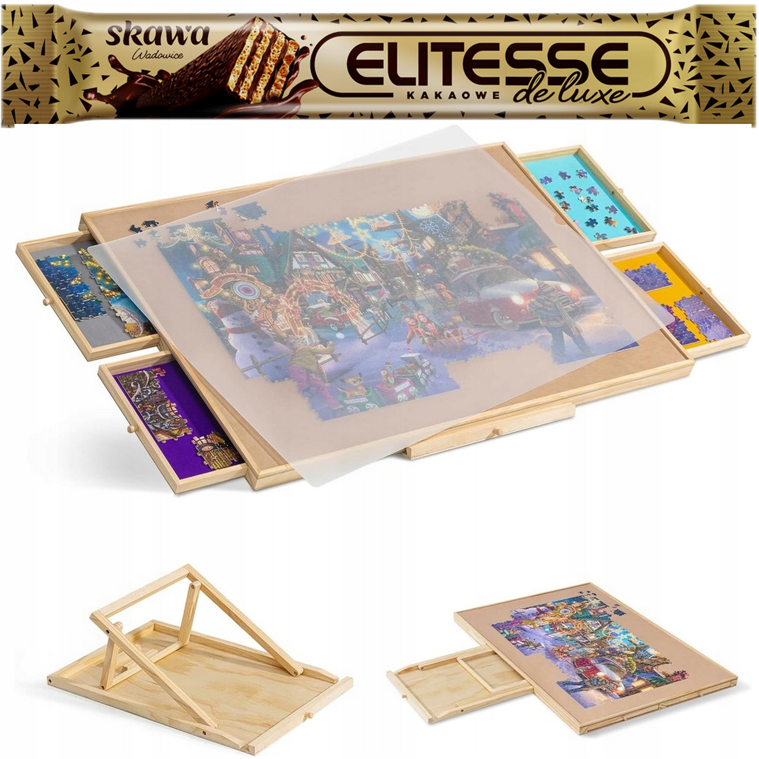 ⭐⭐⭐⭐⭐tetettettektt Портативный деревянный деревянный стол для головоломки/платформы/платы со встроенной регулируемой стойкой/ручкой, прозрачной крышкой PP, 4 ящиками для сортировки до 1500 штук