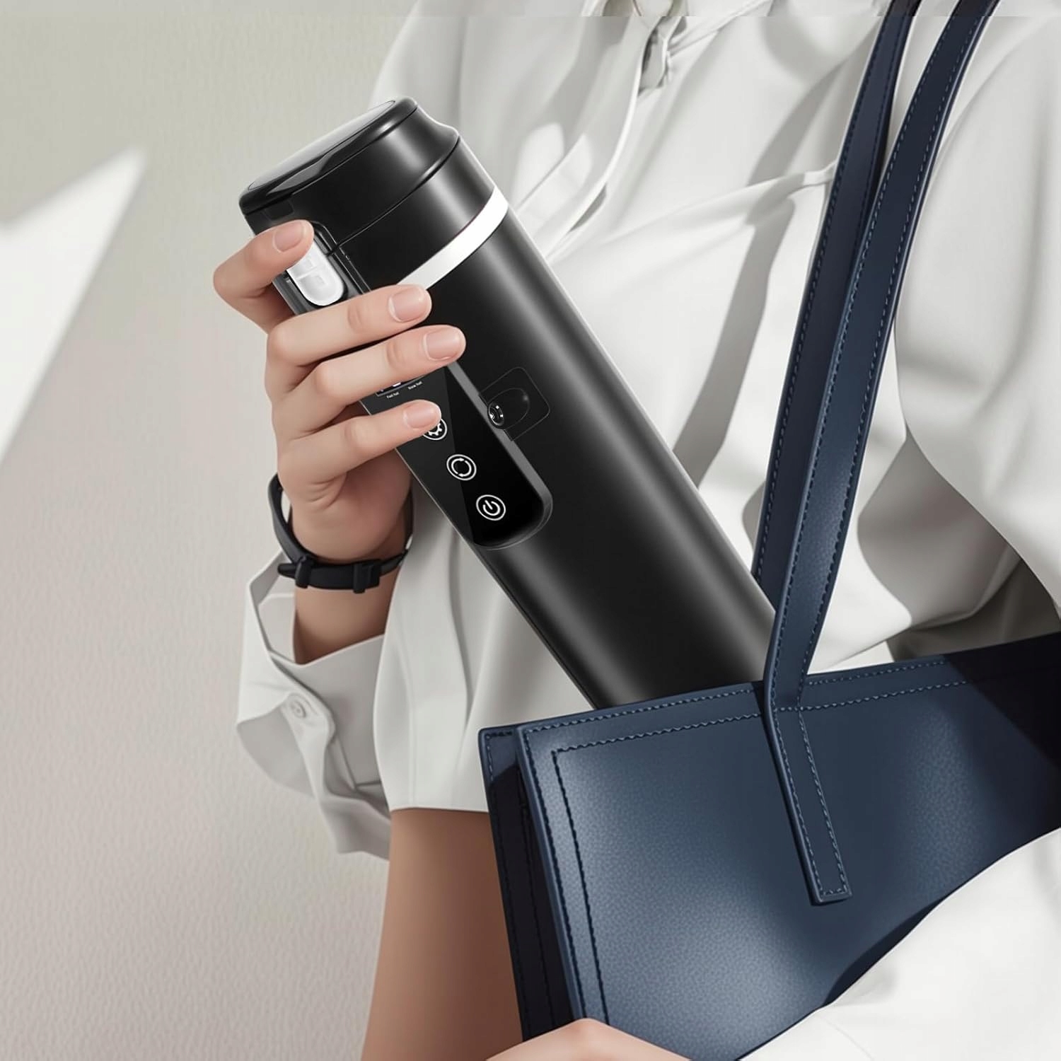 Умная автомобильная кружка с умной сенсорной панелью. Нажав кнопку «☼», вы можете быстро выбрать различные температурные диапазоны: «Приготовление ≈ 100°С», «Чай ≈ 90°С», «Молоко = 45°С»; температуру можно регулировать с помощью кнопки «🔁».