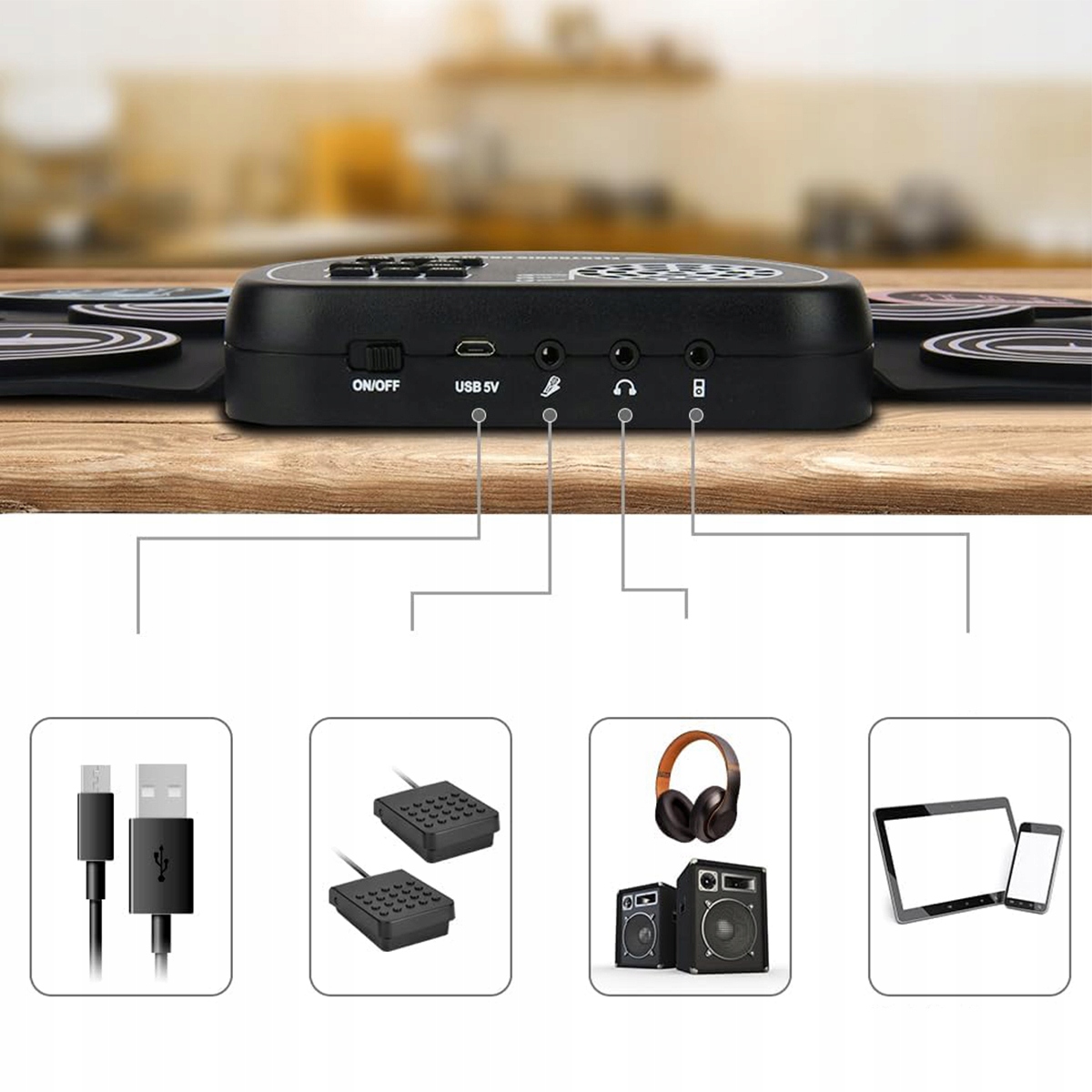 ПОРТАТИВНАЯ ЭЛЕКТРОННАЯ БАРАБАННАЯ НАБОР USB-C + НАБОР ПЕДАЛЕЙ И ПАЛОЧЕК