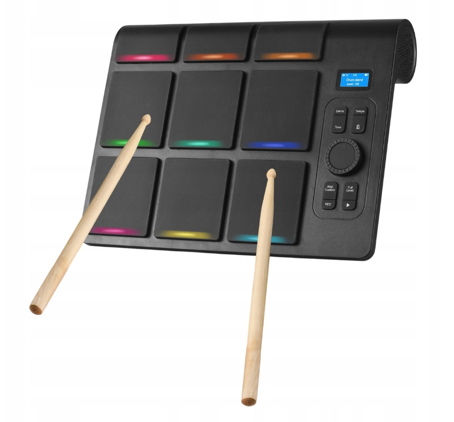 Независимо от того, являетесь ли вы начинающим барабанщиком, учителем музыки или профессионалом, ищущим портативный набор для тренировок, он оправдает ваши ожидания! Благодаря функции персонализации звука для каждого пэда, функции эха, возможности сохранения пользовательских настроек и возможности сброса настроек вы сможете адаптировать барабаны под свои нужды.