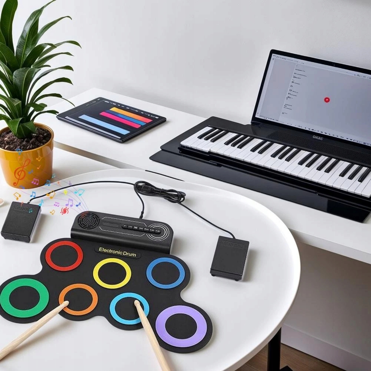 ��🎵Пусть ваш ребенок откроет для себя радость игры на барабанах где угодно и когда угодно! Эта универсальная электронная ударная установка предлагает реалистичное звучание, складную конструкцию и встроенные стереодинамики — идеально подходит для новичков, в дороге или для домашних джем-сейшенов. Отличный подарок, который будет стимулировать ваше музыкальное творчество! 🎵