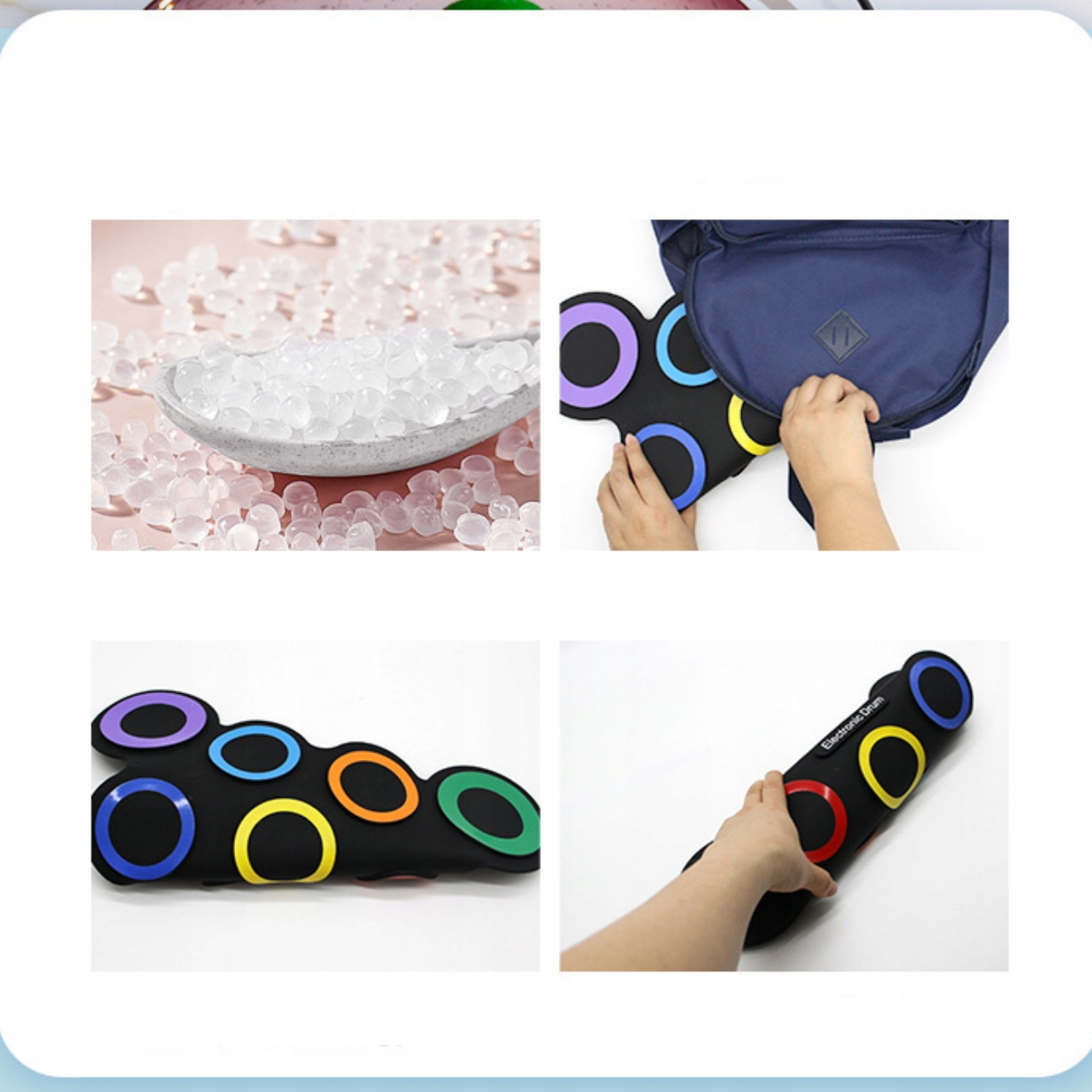 Изготовленный из гибкого, но прочного силикона, он легко сворачивается и помещается в рюкзак. Идеально подходит для путешествия, пикника, вечеринки или урока музыки.