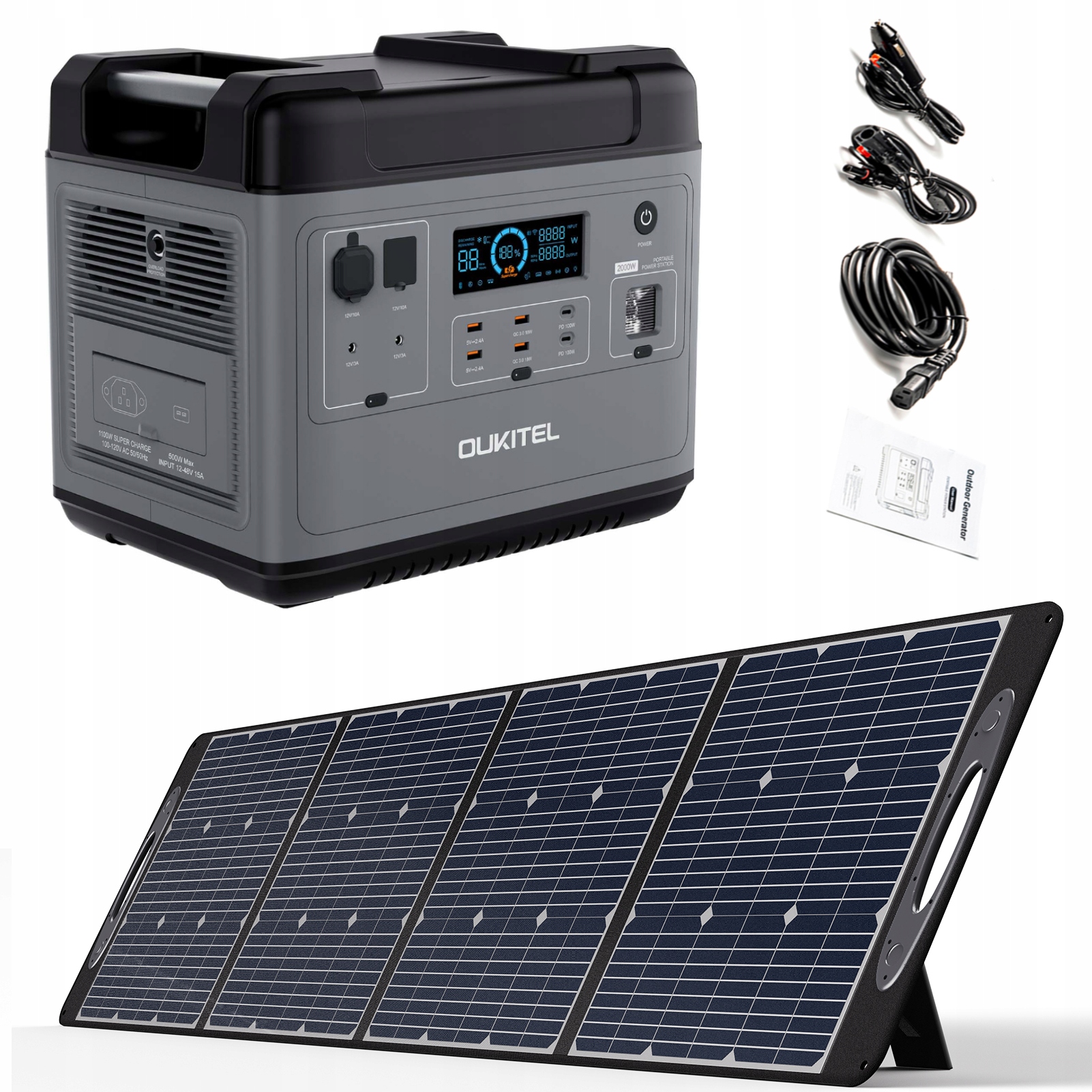 ПОРТАТИВНА ЕЛЕКТРОСТАНЦІЯ 2000 ВТ + СОНЯЧНА ПАНЕЛЬ 200 ВТ