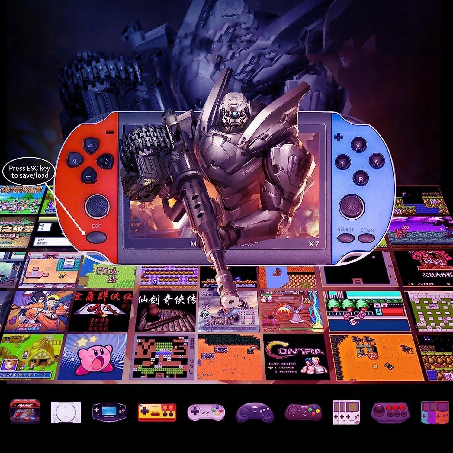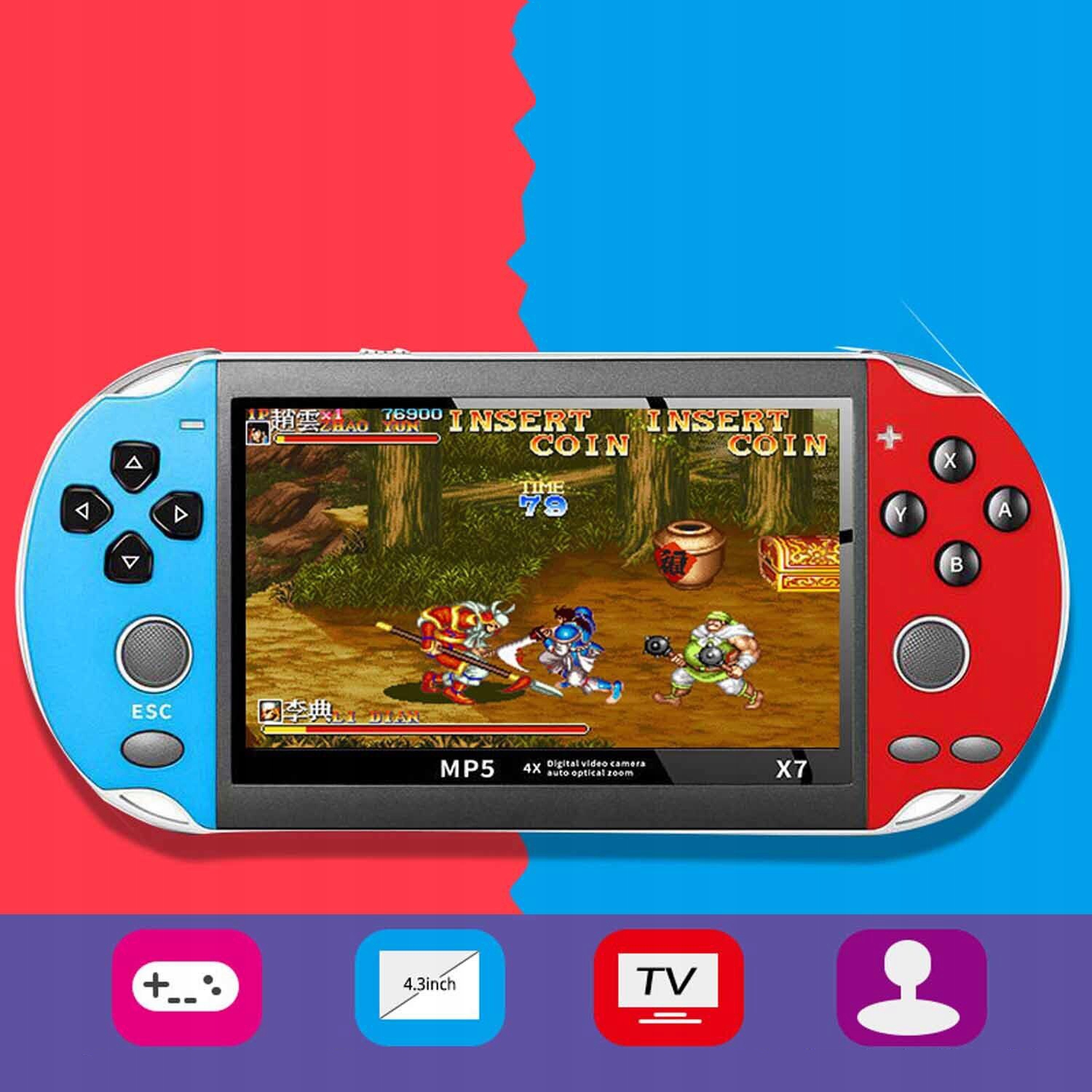 - x7 (4,3-дюймовое качество с высоким разрешением с 8 ГБ памяти), обновление чипа, игровая консоль поддерживает 8-битные, 16-битные, 32-битные и 64-битные игры ловкости.