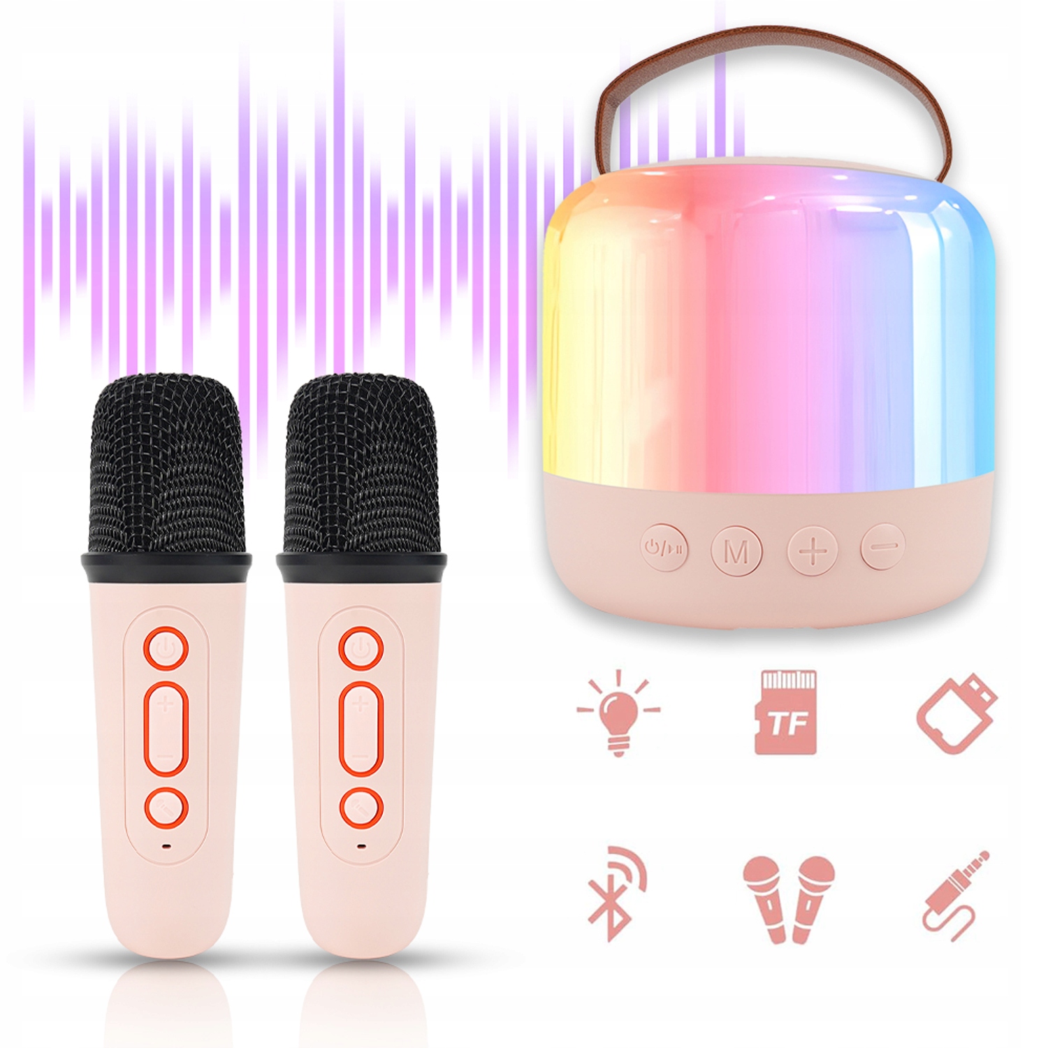 Миниатюрная караоке-машина для детей и взрослых, портативная Bluetooth-колонка с 2 беспроводными микрофонами и светодиодной подсветкой, игрушки для караоке