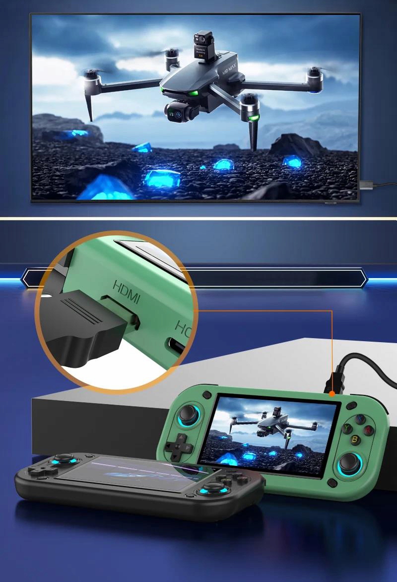 В консоли используется эффективный процессор RK3128, 4-ядерный Cortex-A7, 1,3 ГГц, поддерживается Mali-400MP2, что обеспечивает плавную работу эмуляторов и стабильную работу.
