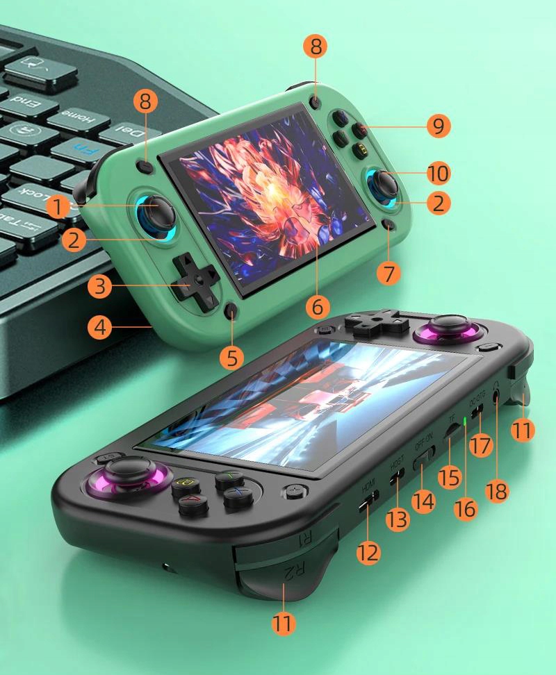 ✅ КОНСОЛЬ R43S 64 ГБ | 4,3-дюймовый IPS | LINUX | ДЖОЙСТИКИ С RGB-ПОДСВЕТКОЙ