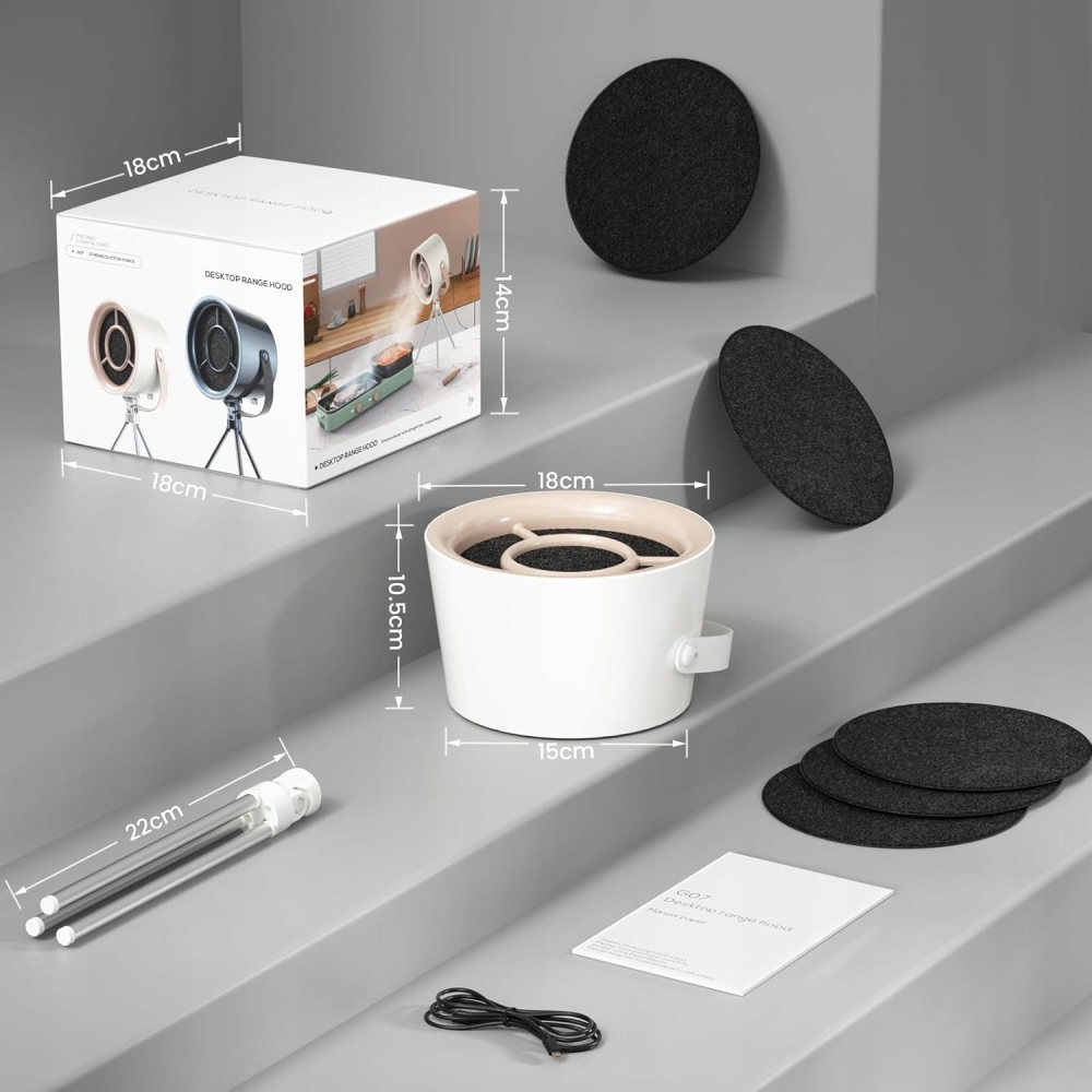 - ♻️【Портативный кухонный очиститель воздуха】: Портативный кухонный очиститель воздуха, идеально подходящий для домов без вытяжки, небольших квартир, кемперов, общежитий, электрических и индукционных плит, домашних грилей, посиделок с горячими блюдами и наслаждения подлинным вкусом корейского и японского барбекю.