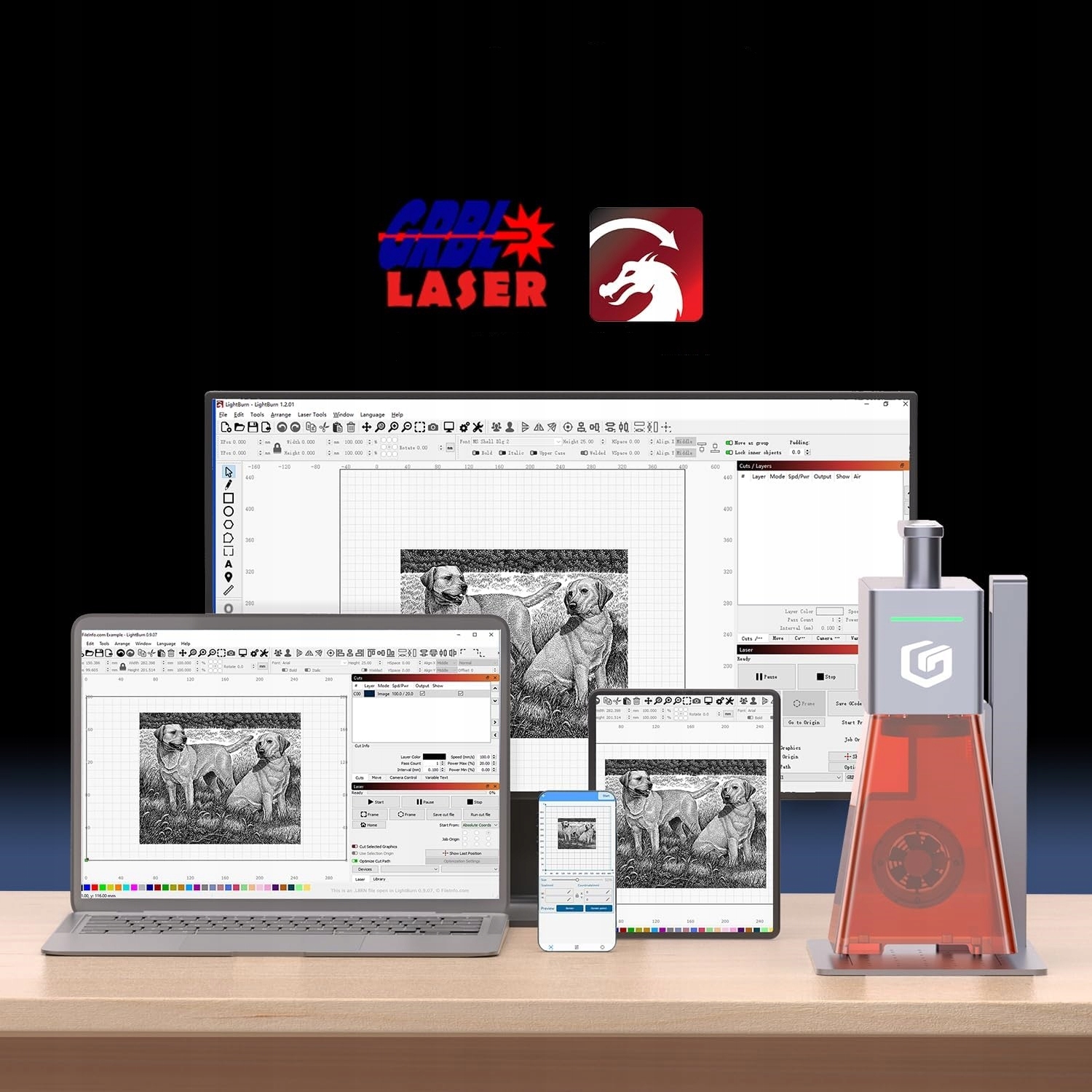 - Поддерживаемые приложения: LightBurn, LaserGRBL и LaserBurn