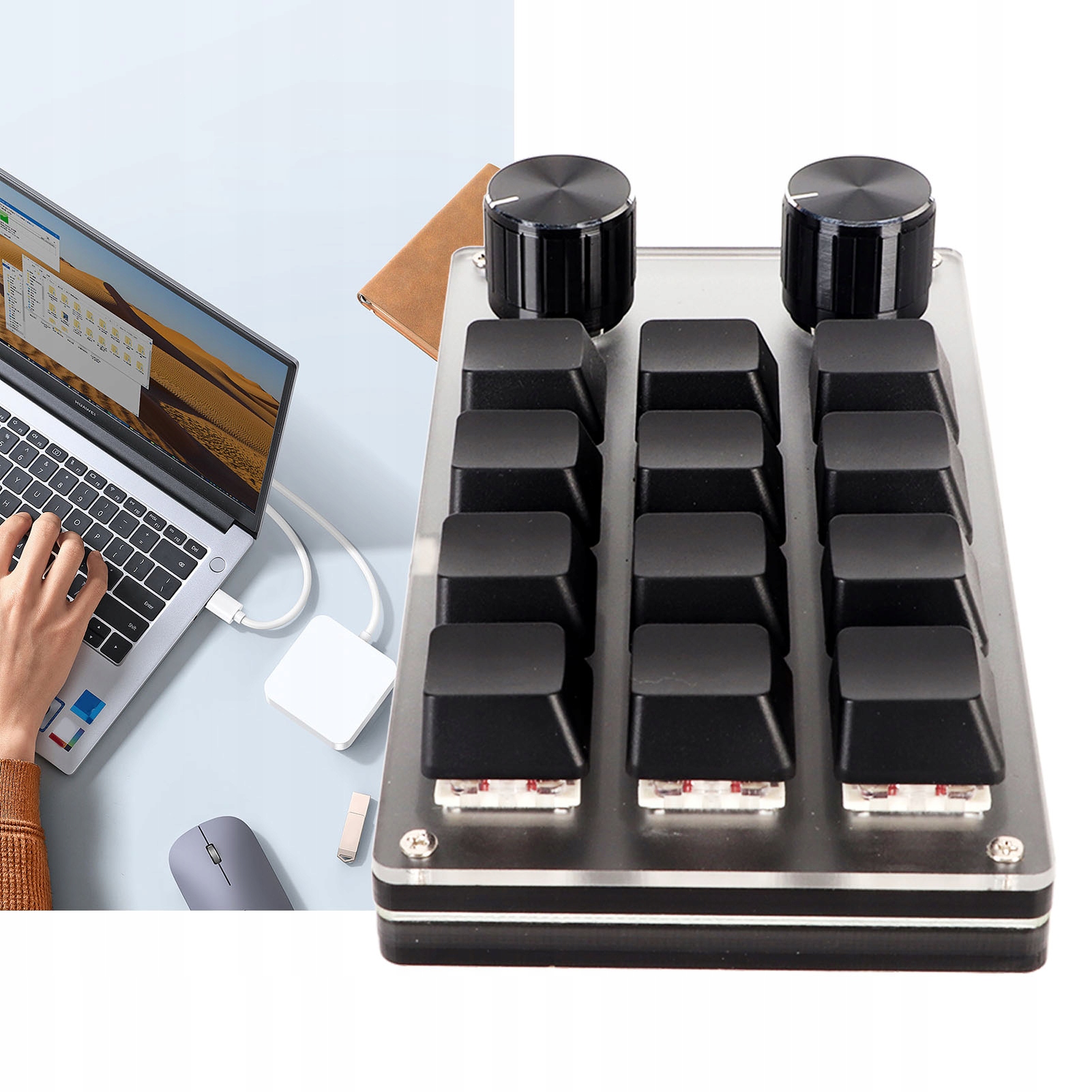 5. Plug and Play: Macro клавиатура, макро -клавиатура похожа на пробку и воспроизведение, не требует контроллера, она сделана из акрилового материала, она длится и может использоваться в течение длительного времени. Портативная мини -клавиатура с ручкой