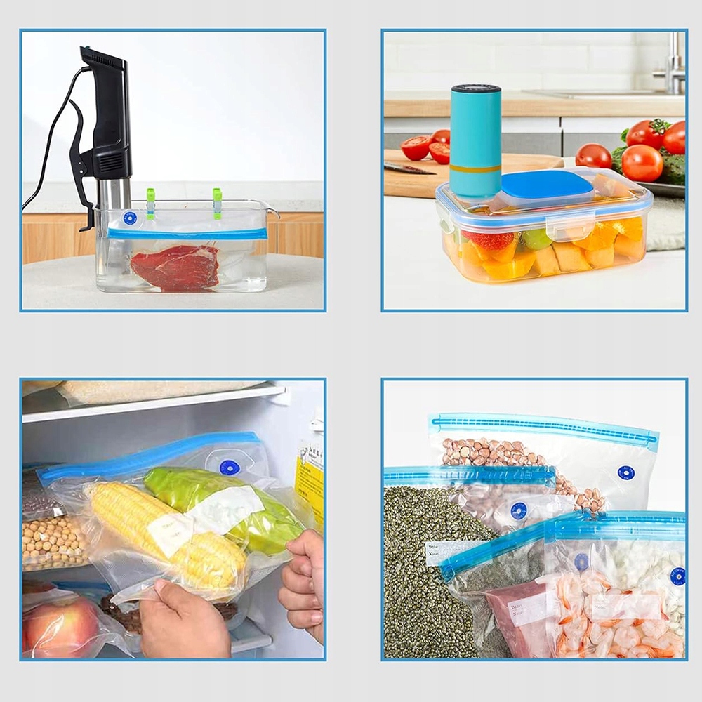 барьер вокруг пищи, эффективно изолируя влагу и кислород, замедляя порчу. Это не только останавливает вкус и питательные вещества, но также расширяет свежесть до пяти раз по сравнению с обычным хранением, предотвращая размягчение, увядание и потерю вкуса фруктов и овощей. Для контакта с едой, без BPA, благодаря которой он намного безопаснее, чем стандартные морозильные сумки и струнные сумки. Подходит для хранения различных ингредиентов, включая мясо, морепродукты, овощи, фрукты, хлопья, орехи, закуски, бутерброды и другие. Обеспечивает как краткосрочное поведение свежести, так и долгосрочное хранилище, что является практичным и обеспечивает душевное спокойствие.