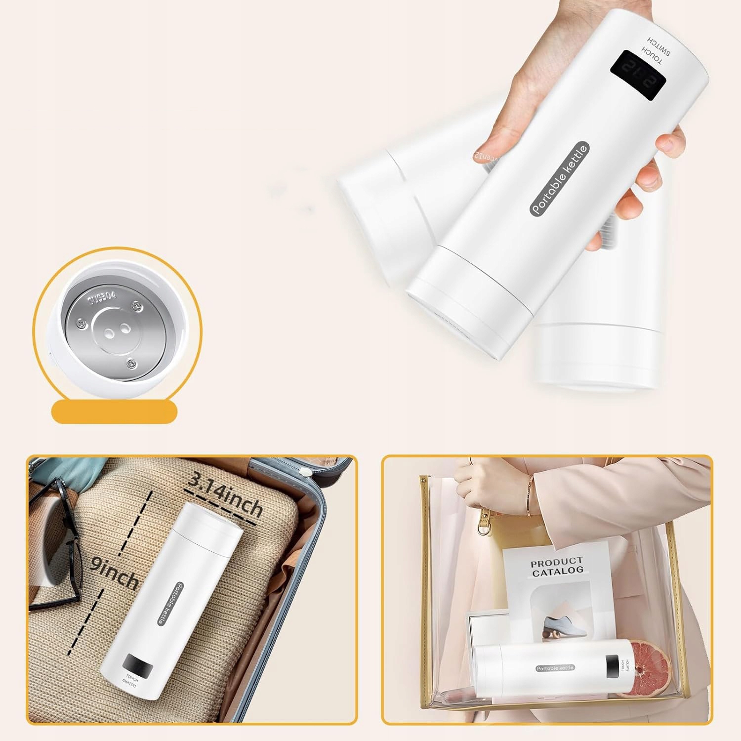 💧💧💧【Легко носить с собой】 Мини-бутылка для воды весит всего 0,51 кг и имеет размеры примерно 8 х 8 х 22,7 см. Компактный и портативный, легко хранить и не занимает места при переноске. После нагрева портативного чайника вы можете добавить до 380 мл воды. (Шнур питания входит в комплект поставки электрочайника, и его можно увидеть, открыв крышку)