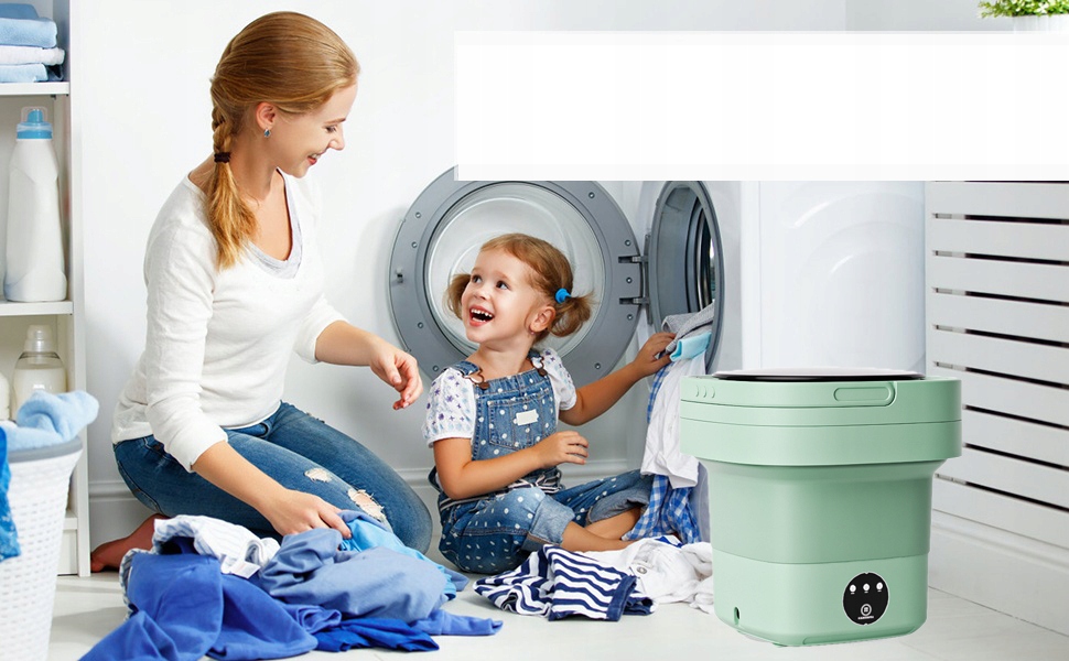 -Эта миниатюрная стиральная машина специально разработана для того, чтобы ее можно было сложить в небольшой чемодан и легко транспортировать. Если вы хотите постирать, просто разложите стиральную машину и положите внутрь одежду.