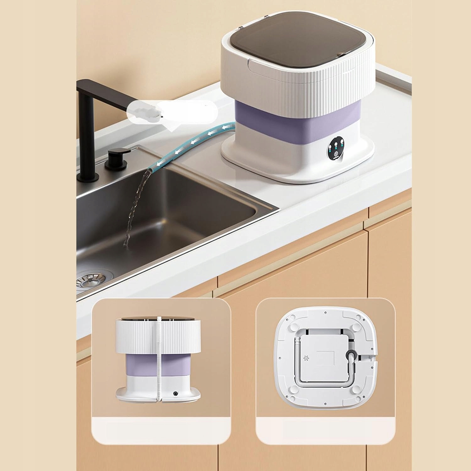 - ✅Эта портативная стиральная машина со встроенной функцией стирки и слива небольшая, но имеет те же функции, что и у более крупной стиральной машины.