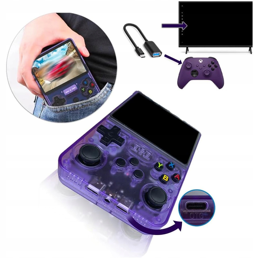 - Эта портативная игровая консоль оснащена 64-разрядным четырехъядерным процессором коры A35 с частотой до 1,5 ГГц и 1 ГБ оперативной памяти DDR3L, что обеспечивает превосходную производительность в играх.