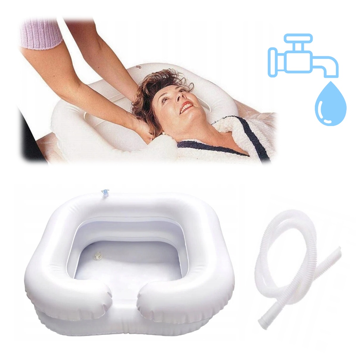 ПОРТАТИВНАЯ НАДУВНАЯ МОЙКА ДЛЯ МЫТЬЯ ВОЛОС из ПВХ СО СЛИВНЫМ ШЛАНГОМ